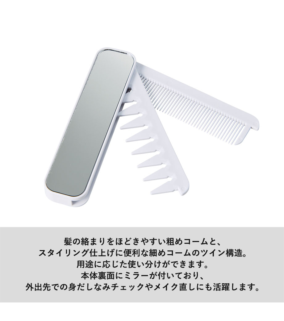 折りたたんでコンパクトに携帯できるミラー&コーム!ストローファイバーを使用してプラスチック量を削減したエコアイテムです。ストローファイバーは、麦などの収穫後に残る茎(ストロー)を再利用した天然繊維素材。ミラーはポイントメイクのお直しに、コームは前髪のお直しに、どこでもサッと使えます。ポーチに入れてもかさばらず、荷物を軽くしたい日におすすめ。
