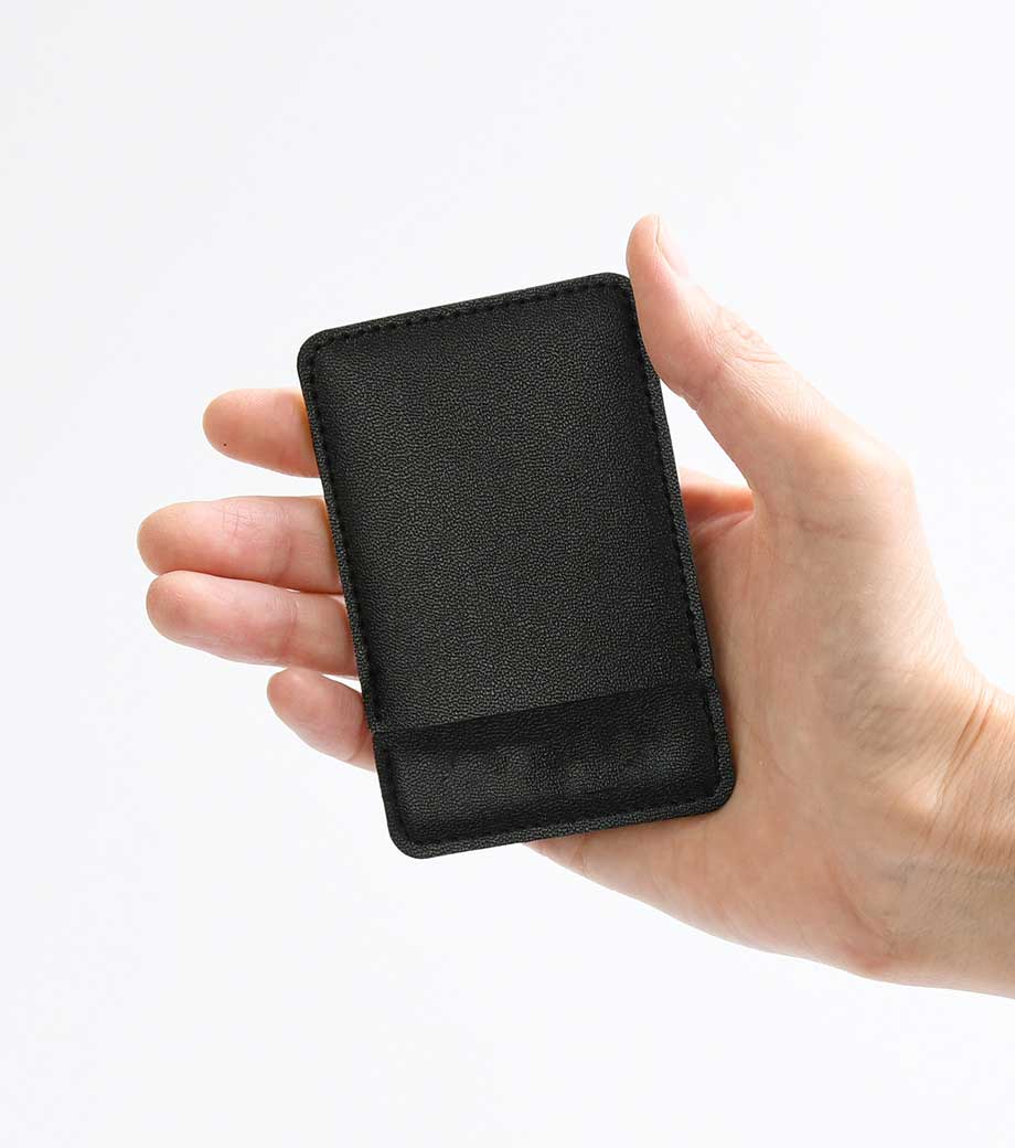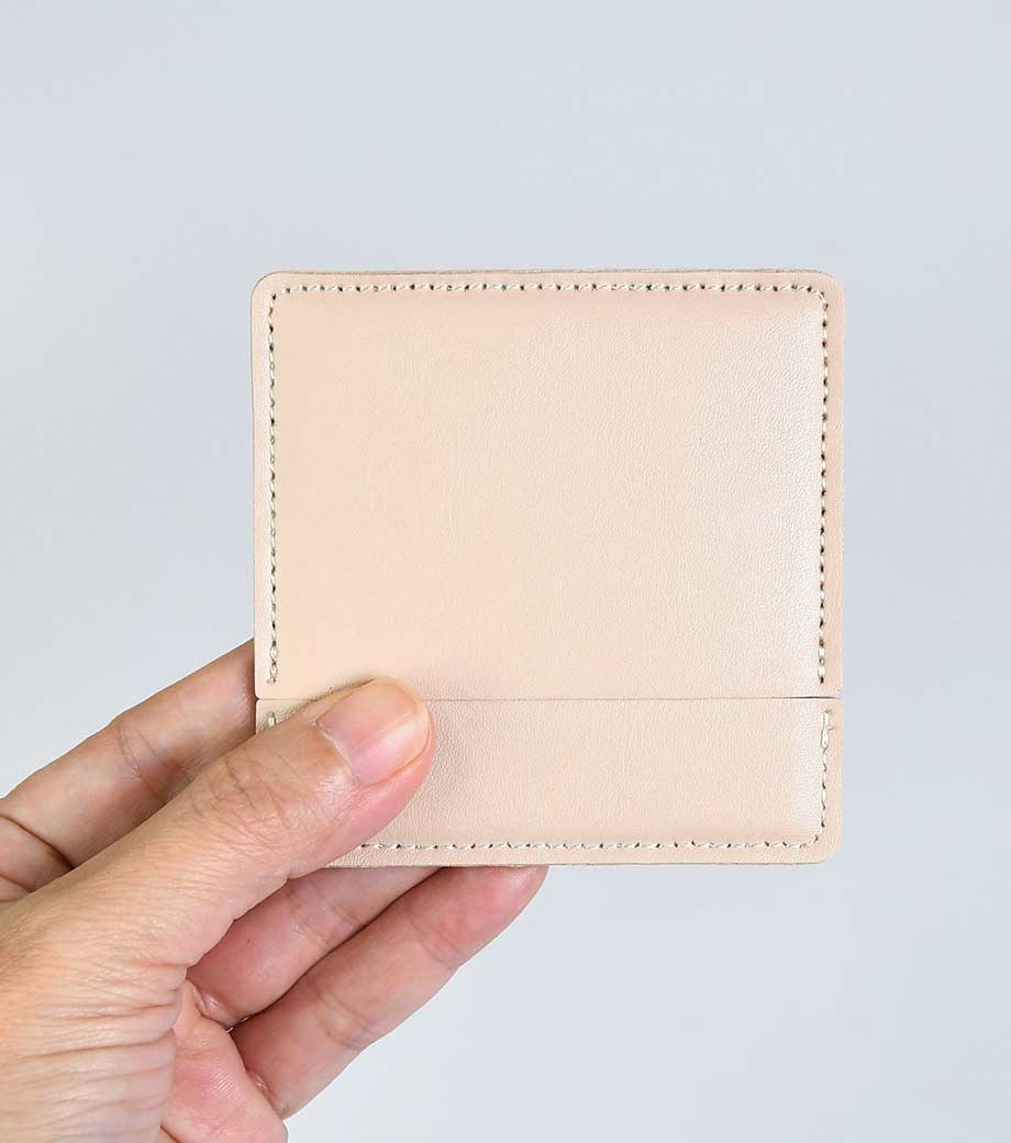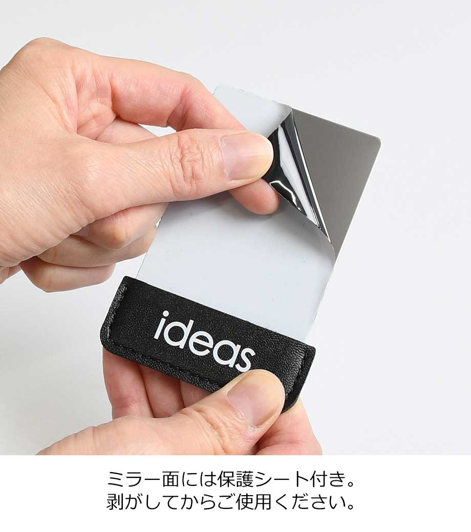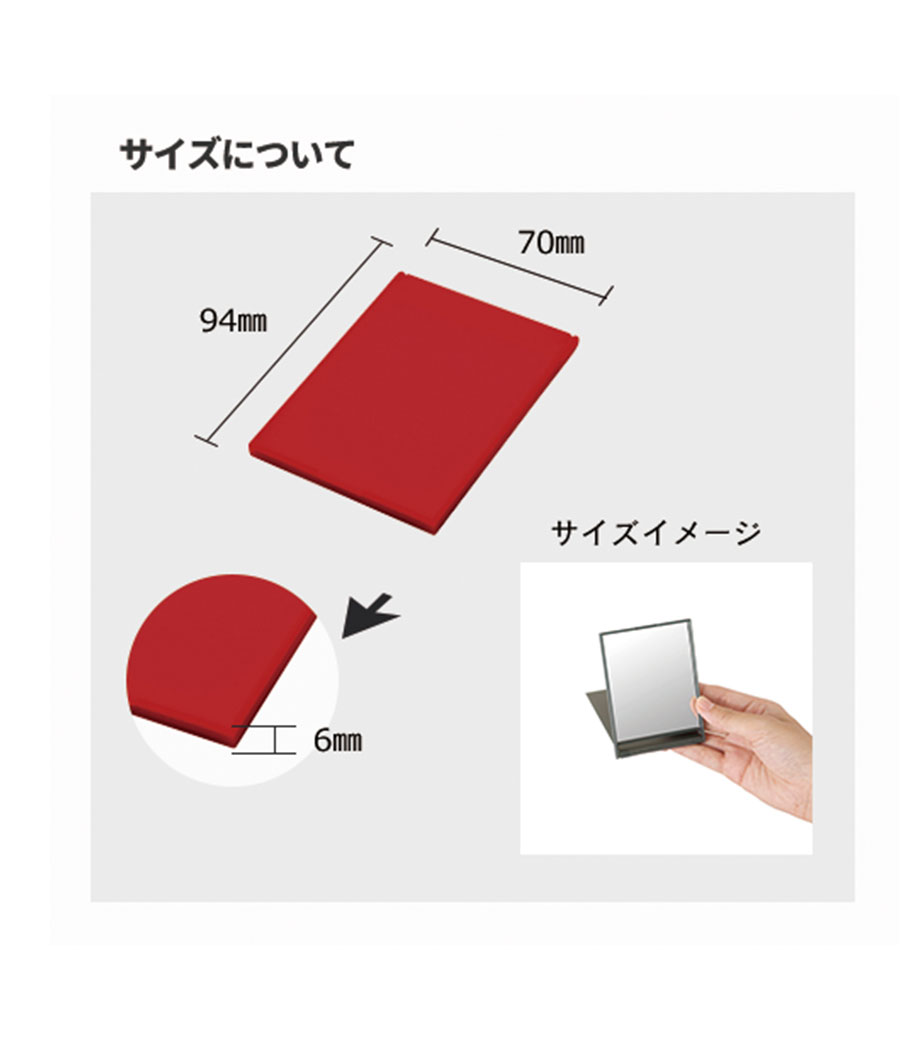 丸い持ち手がついているのは、鏡面が指紋で汚れないようにする工夫。クレジットカードサイズなので、財布や定期入れにすっと入れることができます。