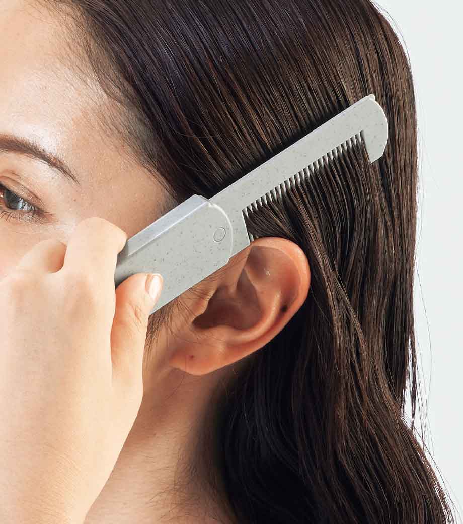 折りたたんでコンパクトに携帯できるミラー&コーム!ストローファイバーを使用してプラスチック量を削減したエコアイテムです。ストローファイバーは、麦などの収穫後に残る茎(ストロー)を再利用した天然繊維素材。ミラーはポイントメイクのお直しに、コームは前髪のお直しに、どこでもサッと使えます。ポーチに入れてもかさばらず、荷物を軽くしたい日におすすめ。