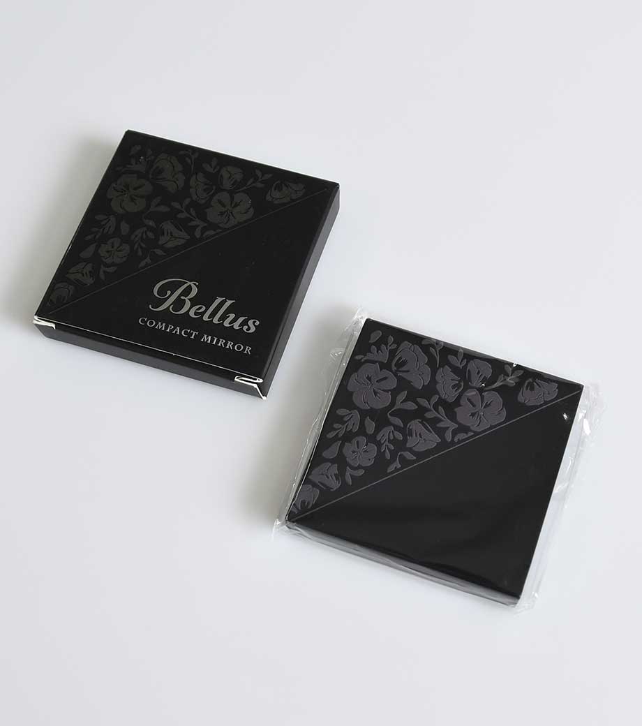 シックなデザインが目を引くコンパクトサイズのミラーです。片面は通常ミラー、もう片面は拡大鏡でメイク直しにもぴったり。手のひらサイズなので持ち運びにやすく、オフィスや外出先にも活躍します。落ち着いたカラーのブラックとベージュの2色展開です。お洒落なデザインパッケージ入りなのでそのまま渡せるのも嬉しいポイント。ブランドのロゴを1色印刷してコスメショップの購入特典やオープン記念品にいかがでしょうか。