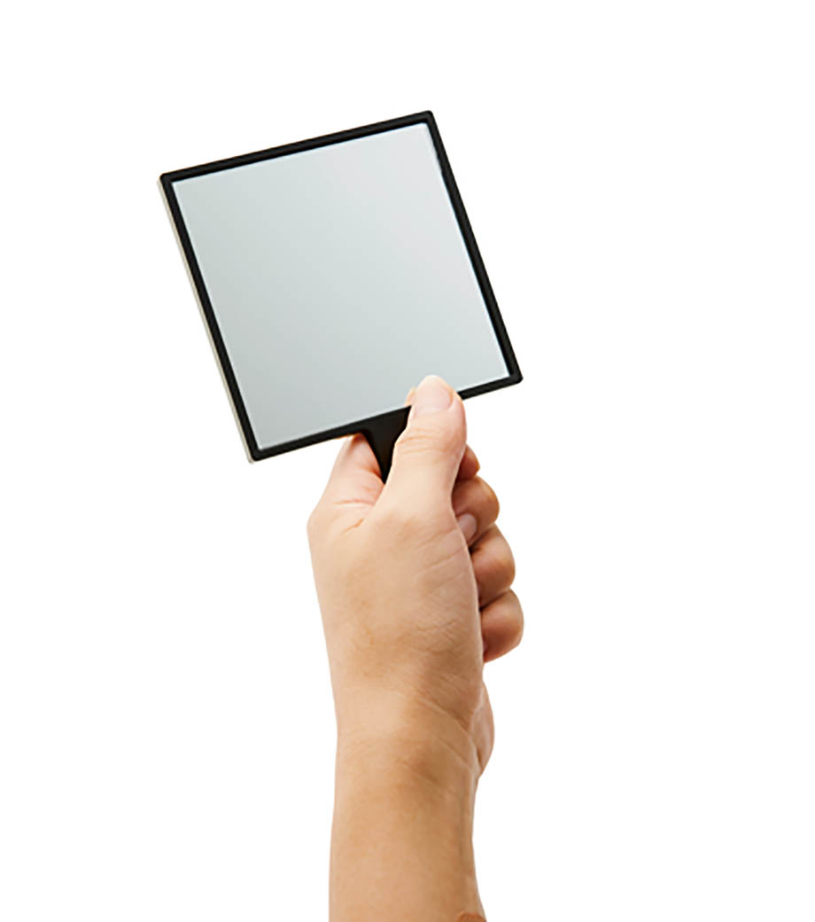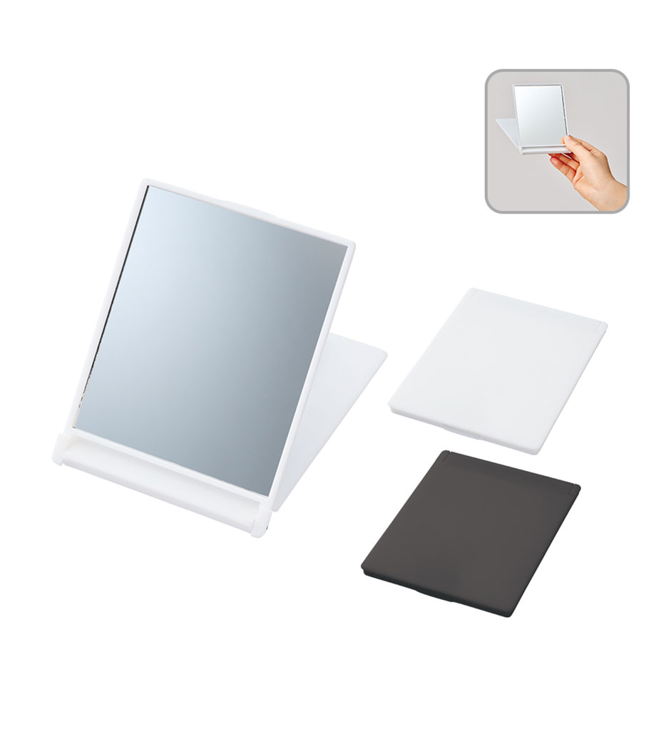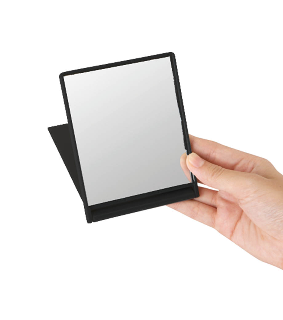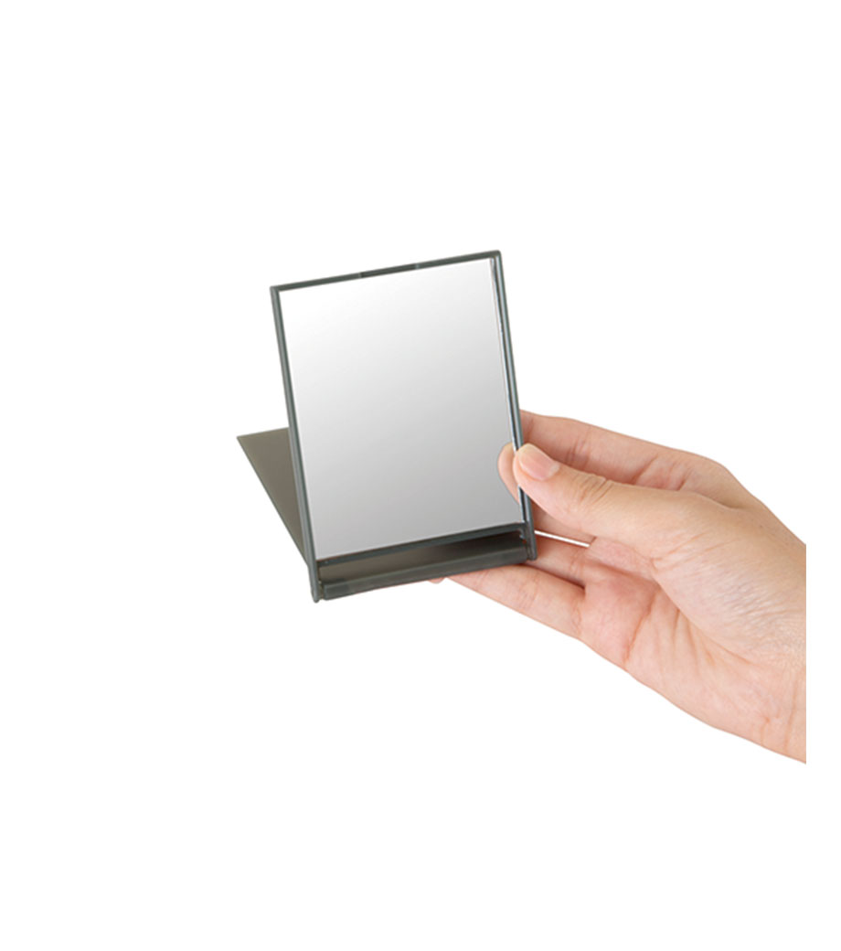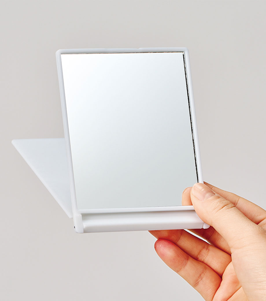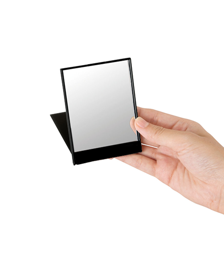手のひらサイズで携帯に便利なミラー。シンプルな長方形型で使いやすく、卓上ミラーとしても活躍します。日常使いや外出先での身だしなみチェックに最適です。
