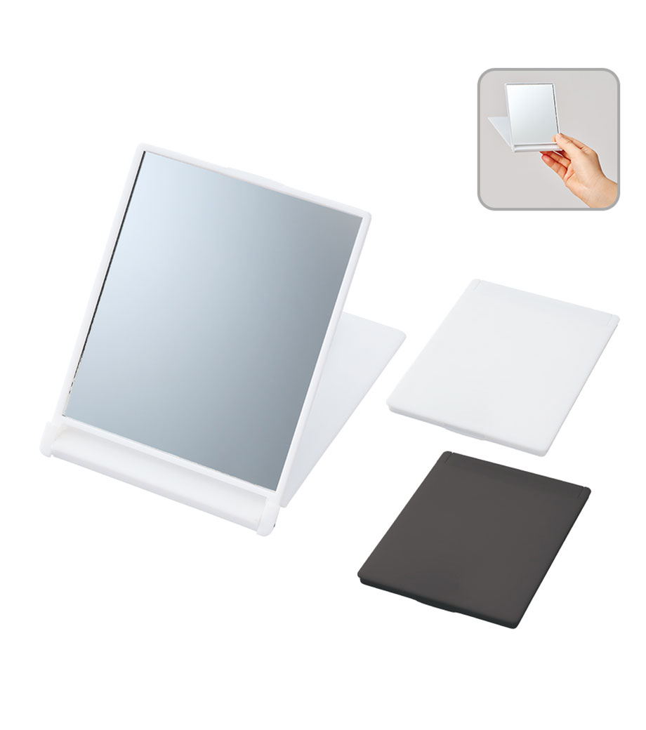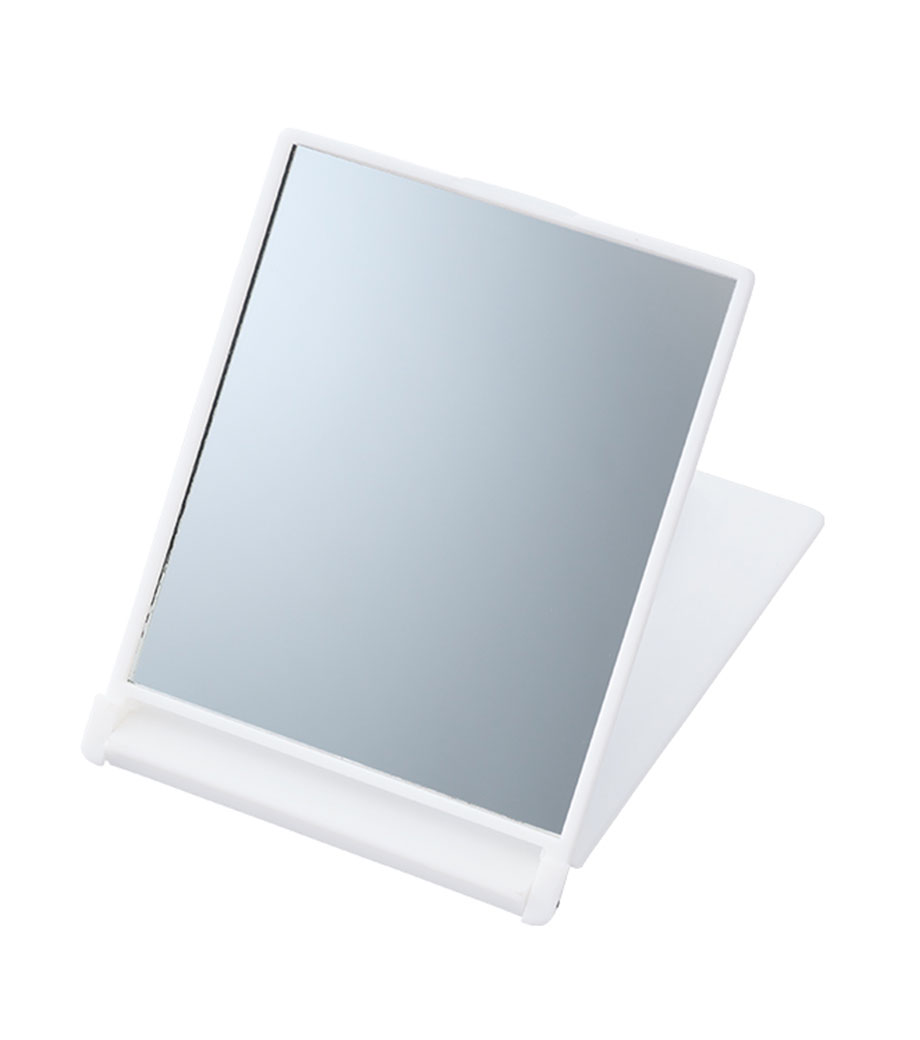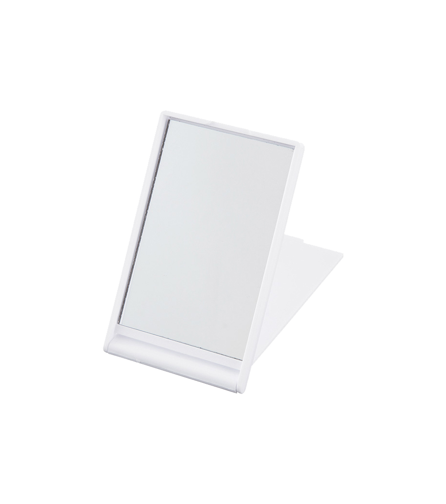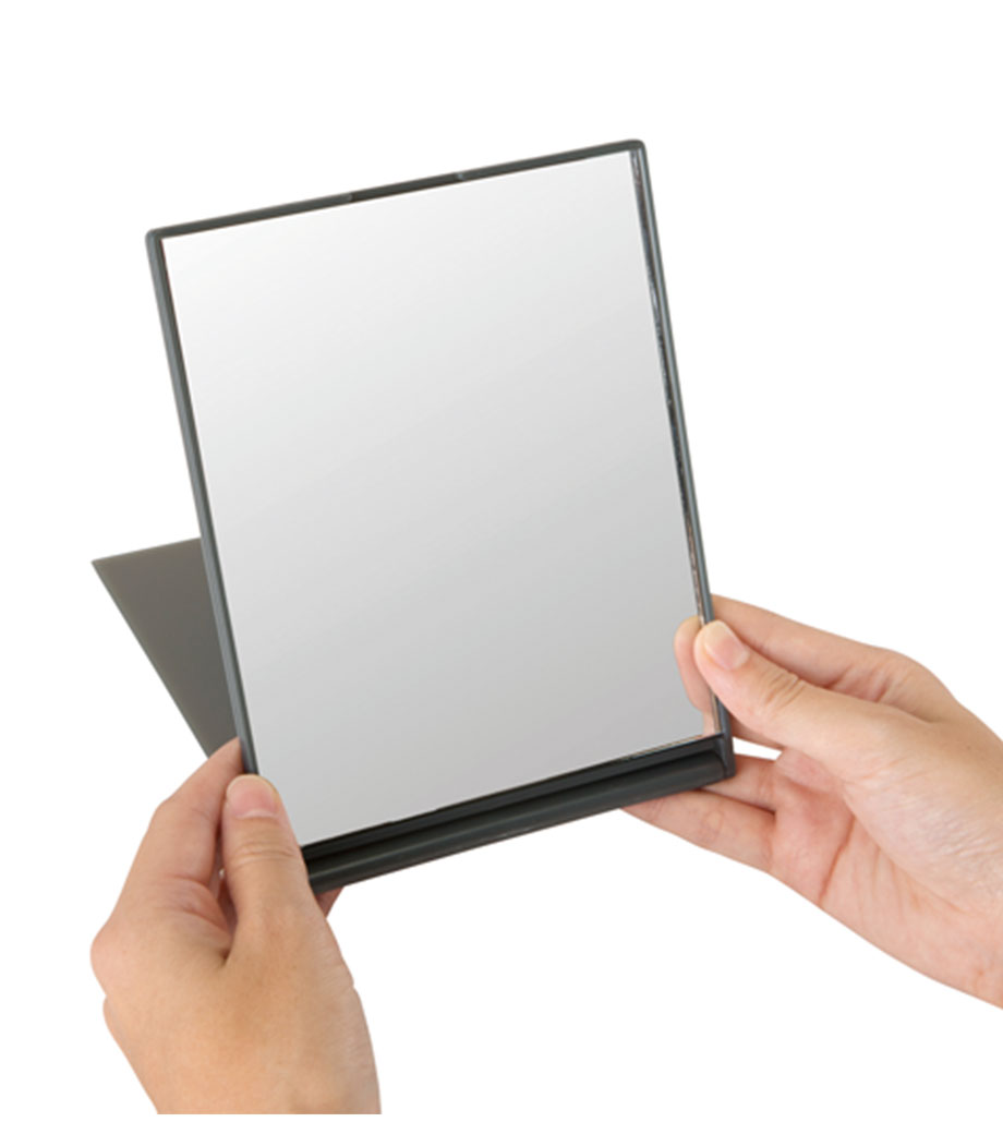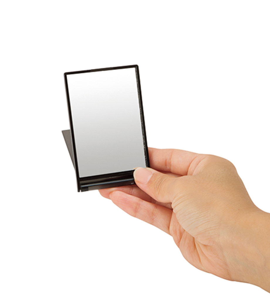 携帯に便利なシンプルなミラー。長方形型で卓上ミラーとしても使えます。日常使いや外出先での身だしなみチェック、メイク直しにぴったりです。