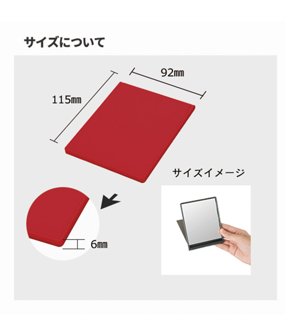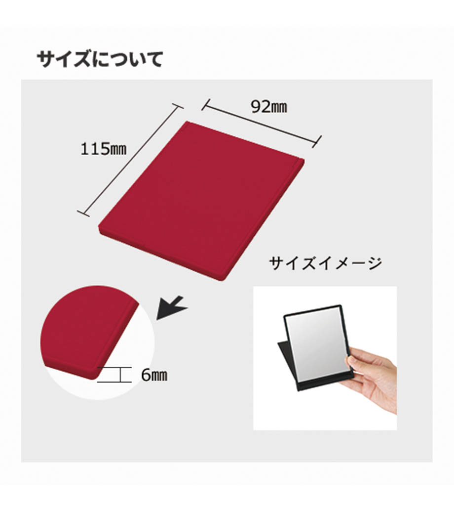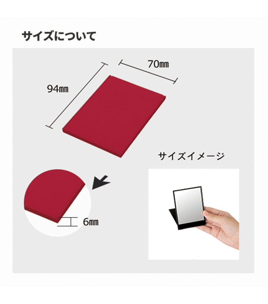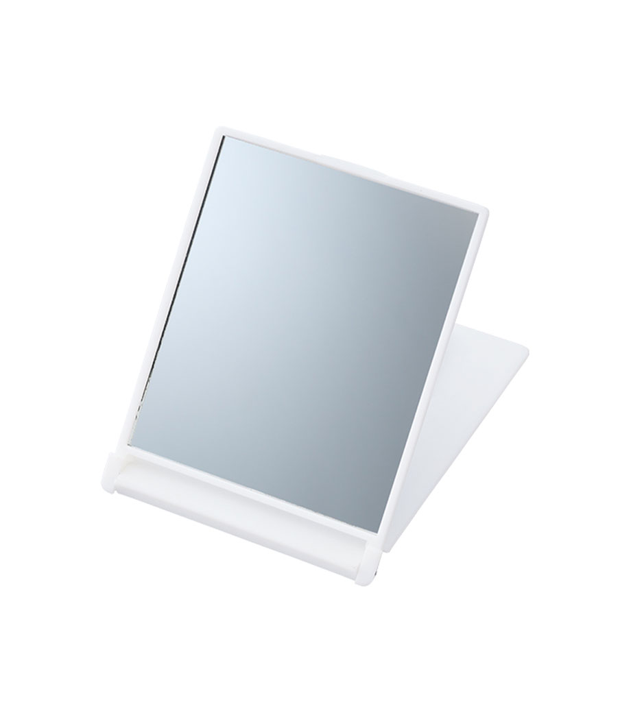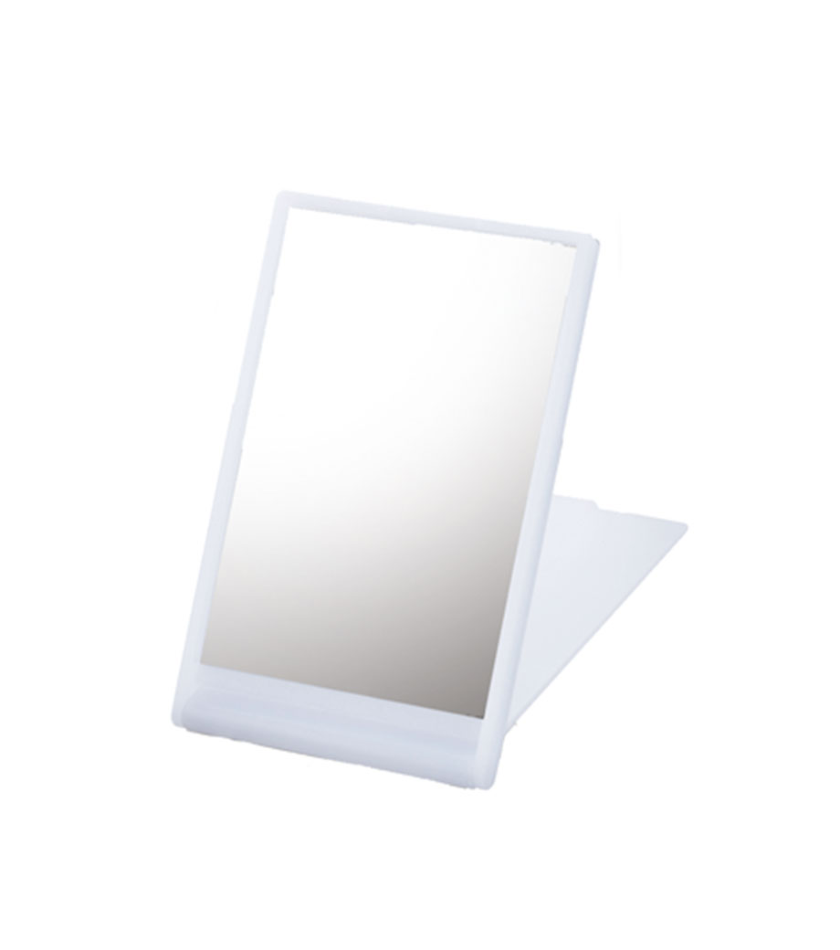 携帯に便利なシンプルなミラー。長方形型で卓上ミラーとしても使えます。日常使いや外出先での身だしなみチェック、メイク直しにぴったりです。