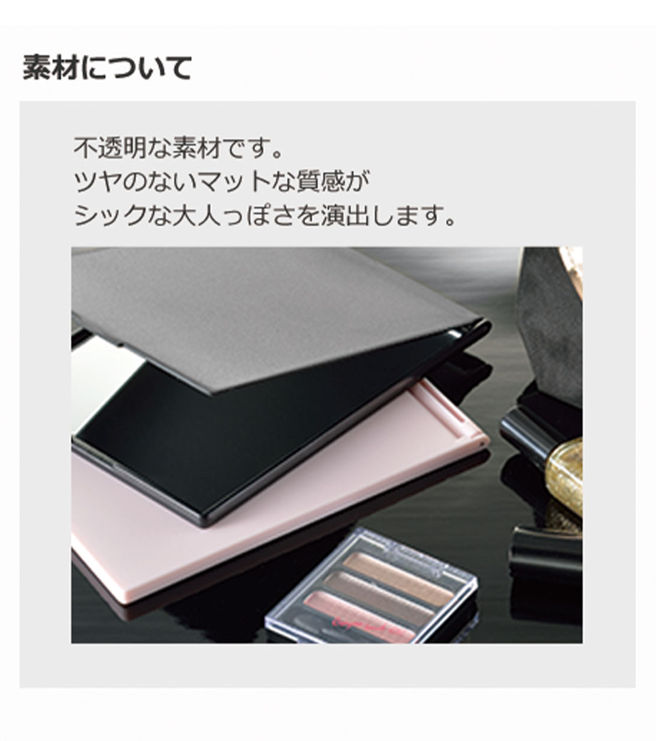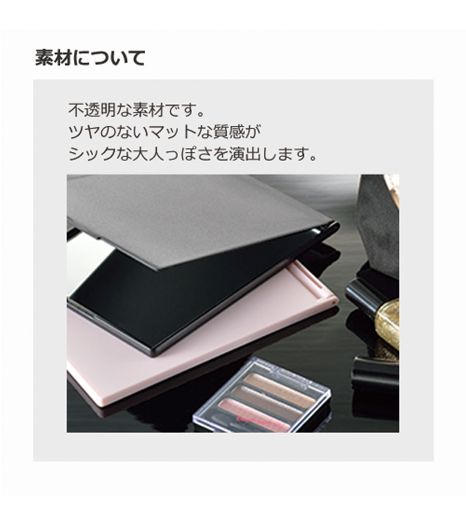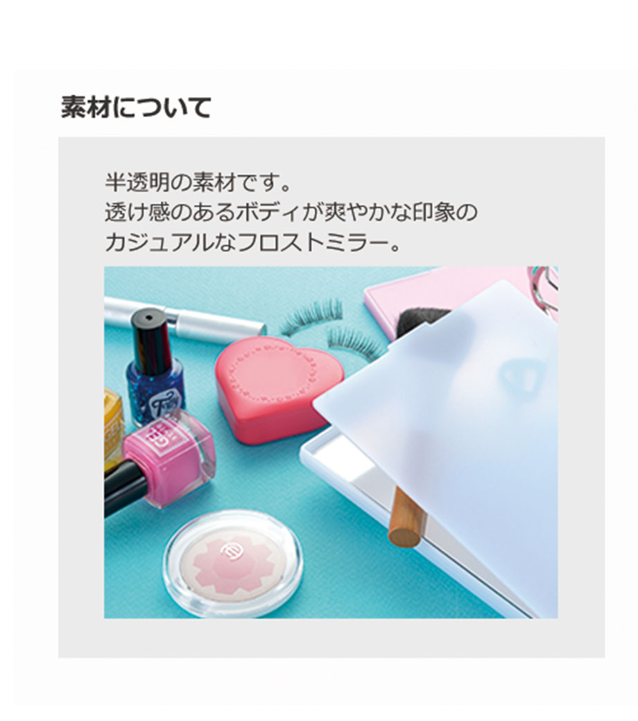 「フロストスクエアミラー(M)」は、ソフトな印象のフロスト調カラーがおしゃれな、折りたたみ式スタンドミラー。バッグやウエストポーチにも収まるお手頃サイズ。いつでもどこでも身だしなみがチェックできます。