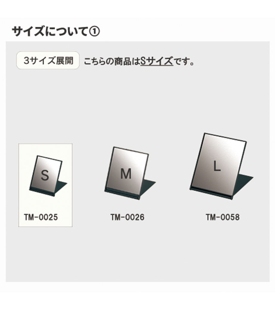 「ステンレスカードミラー取手付」は、ステンレス製のミラー。薄手ですがガラス製ではないので割れる心配がなく、丈夫で高性能です。