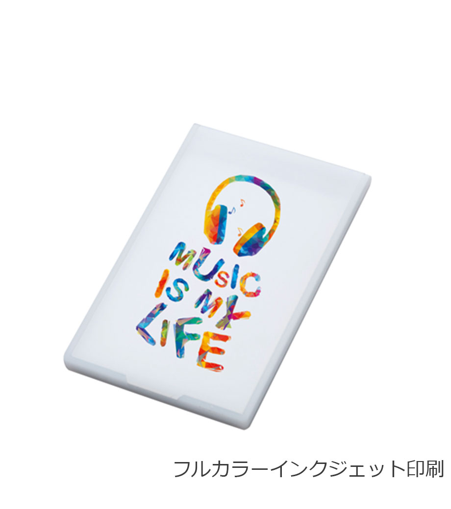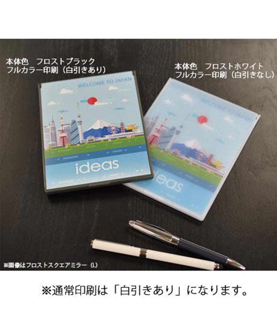 名入れはケース上部または下部に1色印刷が可能です。ブランドやショップロゴを入れた購入特典などにいかがでしょうか。厚さ3mmと薄型なのでメール便を使ったポストインでのお渡しも可能です。