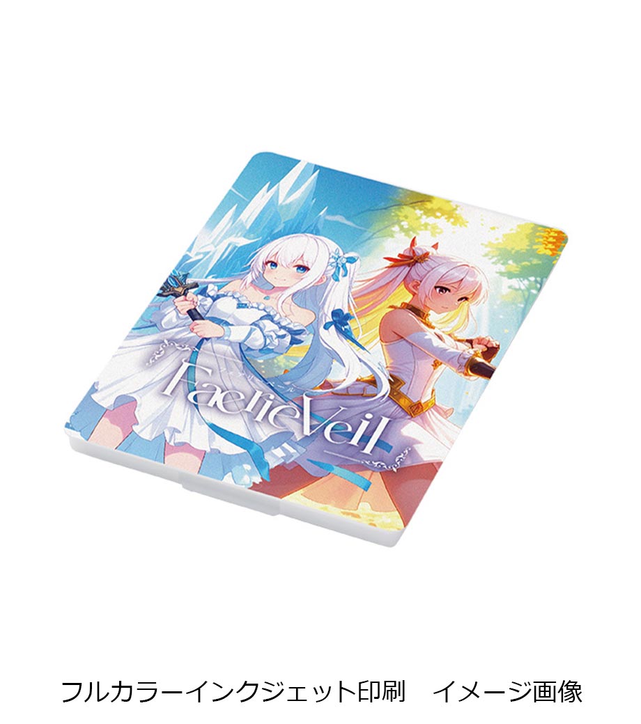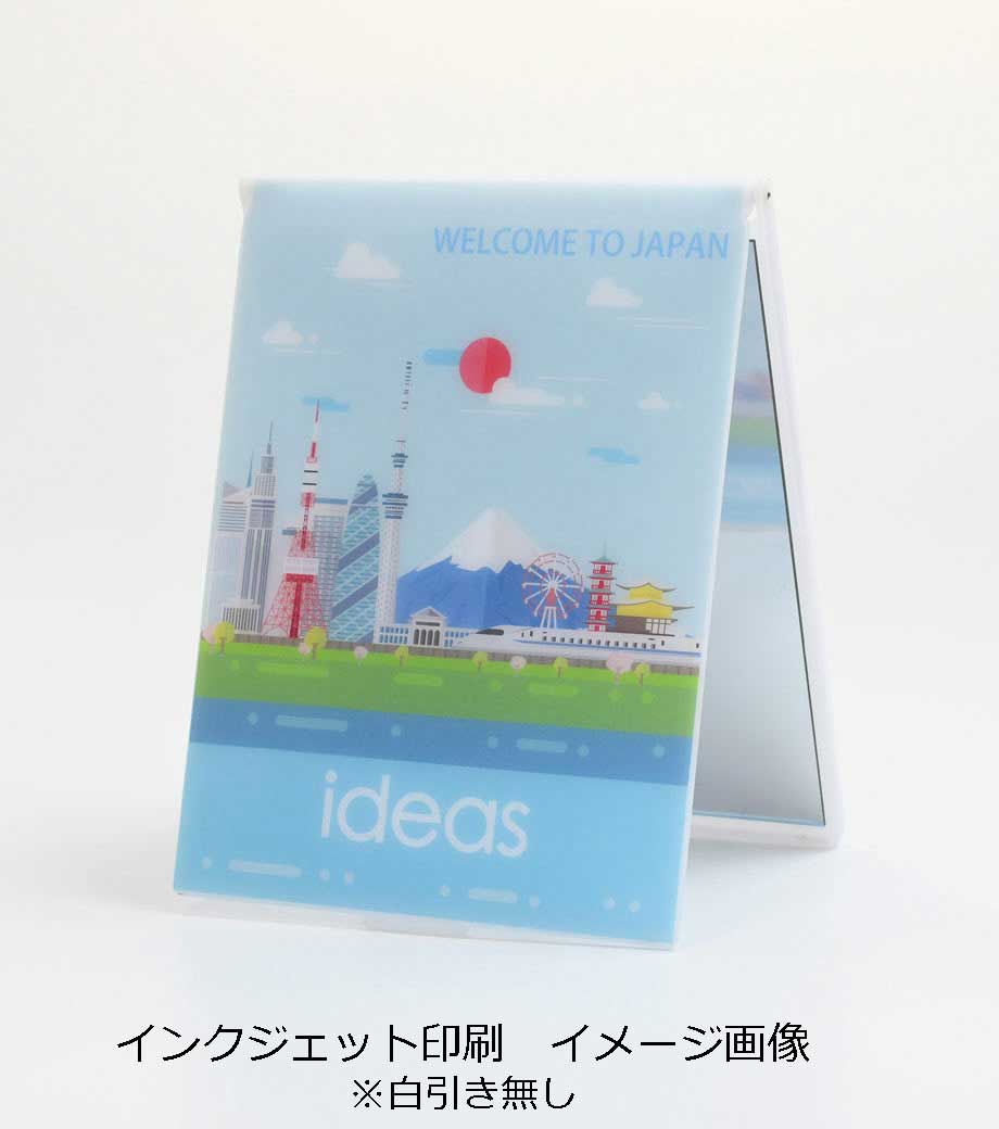 上フタ部分に1色印刷とフルカラー印刷できます。特に全面に印刷ができるフルカラー印刷では、グラデーションなどのポップなデザインから不透明水彩のようなやわらかなデザインで、インパクトあるオリジナルミラーを作成することができ、大変好評です。