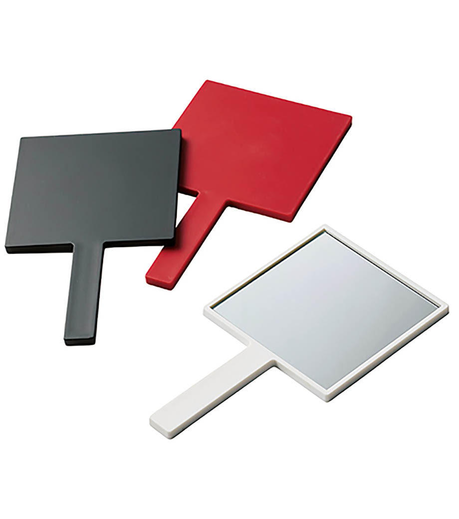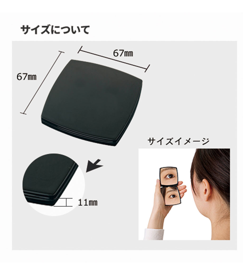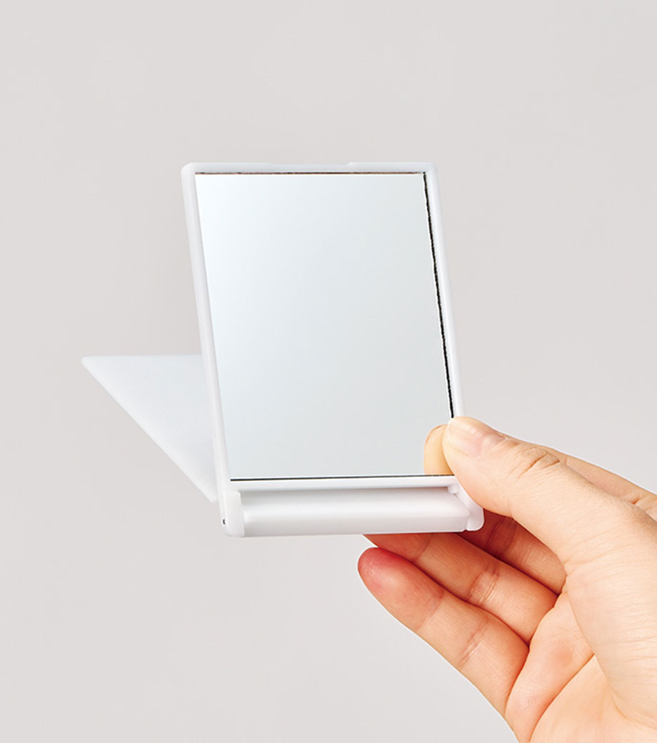 「スクエアコンパクトミラー」は、手に持ちやすくデザインした小型の鏡。通常の鏡と拡大鏡が向き合ってセットされているので、細かいアイメイクにも便利です。コンパクトで持ち運びしやすいから、外出先でのメイク直しにも重宝しますよ!本体色は、すっきりスタイリッシュなホワイトとブラック、シックなレッドの3色から選べます。