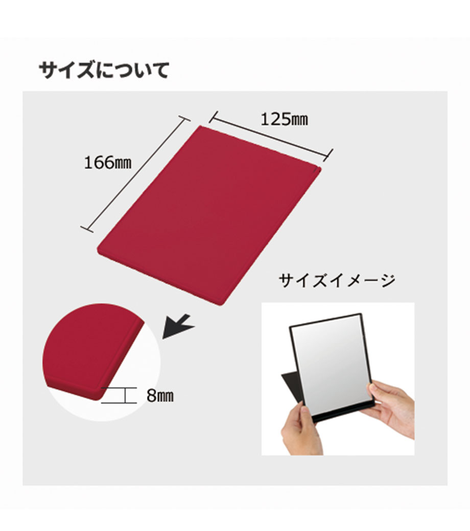 フォールディングミラー大はパスポートと同じB7サイズのスタンド式ミラー。大きすぎず、小さすぎない手頃なサイズが魅力。鞄やポーチに入れて持ち運びしやすいので、さっと取り出して身だしなみチェック可能!荷物を軽くしたい旅行やレジャーにもおすすめです。