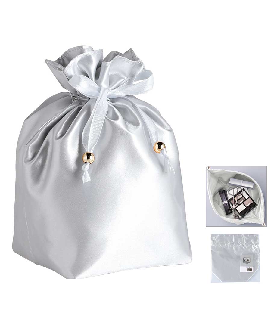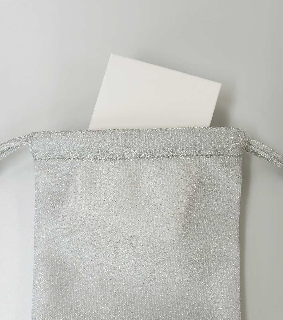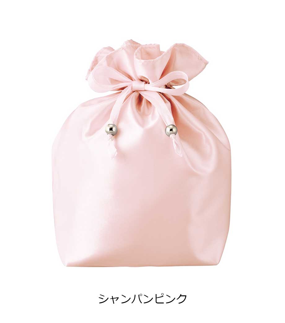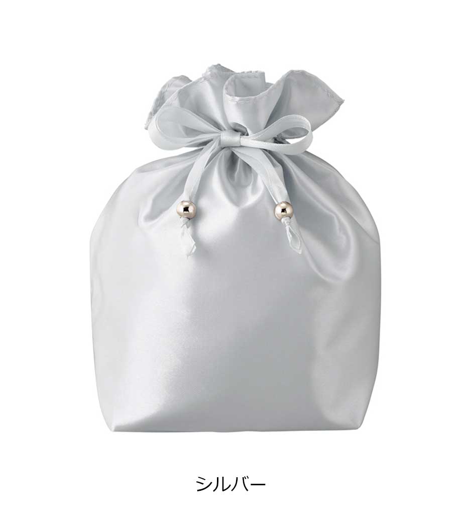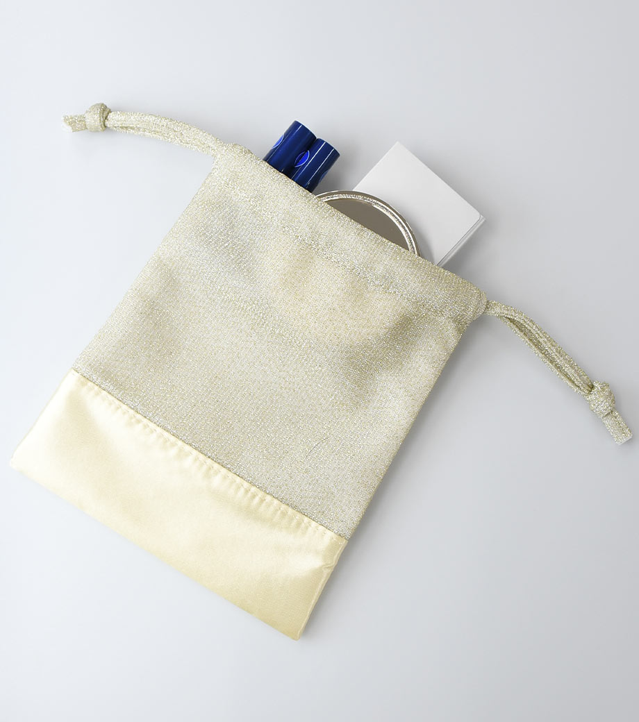 ラメ×サテンの輝きが目を引く、おしゃれなデザインの巾着です。コスメや雑貨を入れたギフトラッピングにぴったり!普段使いの収納アイテムとしても活用できます。見るだけで心が躍る、印象的なノベルティをお探しの方におすすめです。