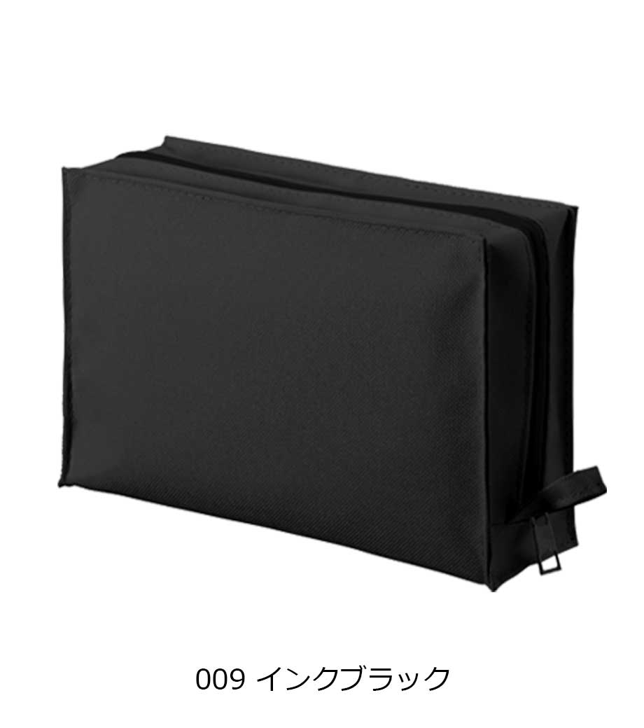 片面がメッシュ素材製、豊富な仕切りが便利なポーチです。見せたい物と隠したいものを分けて収納可能!ペンやメモ帳などをまとめる文具ポーチや、化粧ポーチとして多目的に使えます。テント生地にも使用されているテントクロス生地は撥水性があり、汚れも落としやすいのが特徴。シンプルな色合いの本体色はブラック・ネイビー・ベージュの3色から選べます。ポケット表面かポーチ裏面に1色印刷が可能です。ショップのロゴを印刷しておしゃれなノベルティが作成できます。