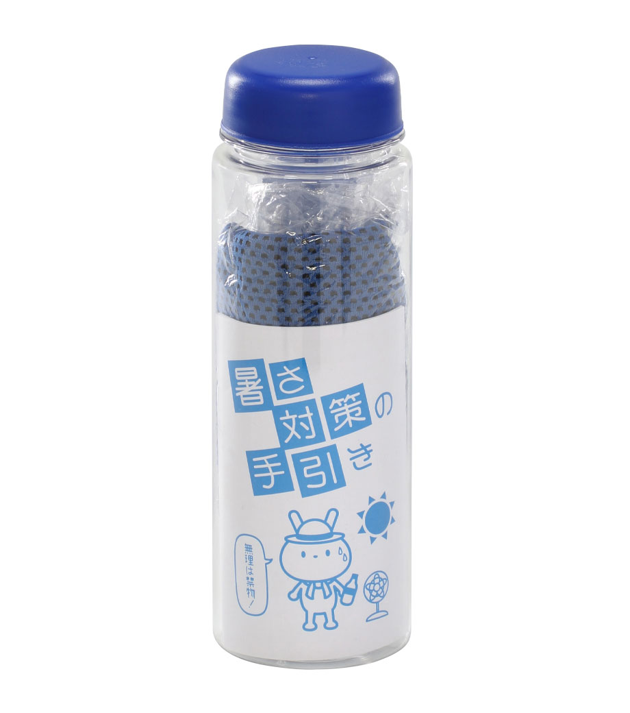 涼感マフラータオル(ボトルケース付)は水に濡らしてヒンヤリ感が得られるクールタオルです。繰り返し使用できるのでとってもエコ。薄手のタオルなので使い勝手がよく、首にかけるだけでなくヘアバンドのように頭に巻いても使えます。