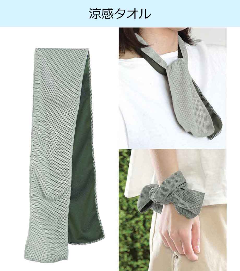 熱中症対策に大人気!水で濡らして絞るだけでひんやりするクールタオル。首に巻くのはもちろん、頭や腕に巻いたり、汗拭きタオルとしても使える万能さ。洗濯して繰り返し使えるクールタオルはエコグッズとしても注目です。パッケージはジッパー付きで、濡れたタオルの保管袋として使えます。