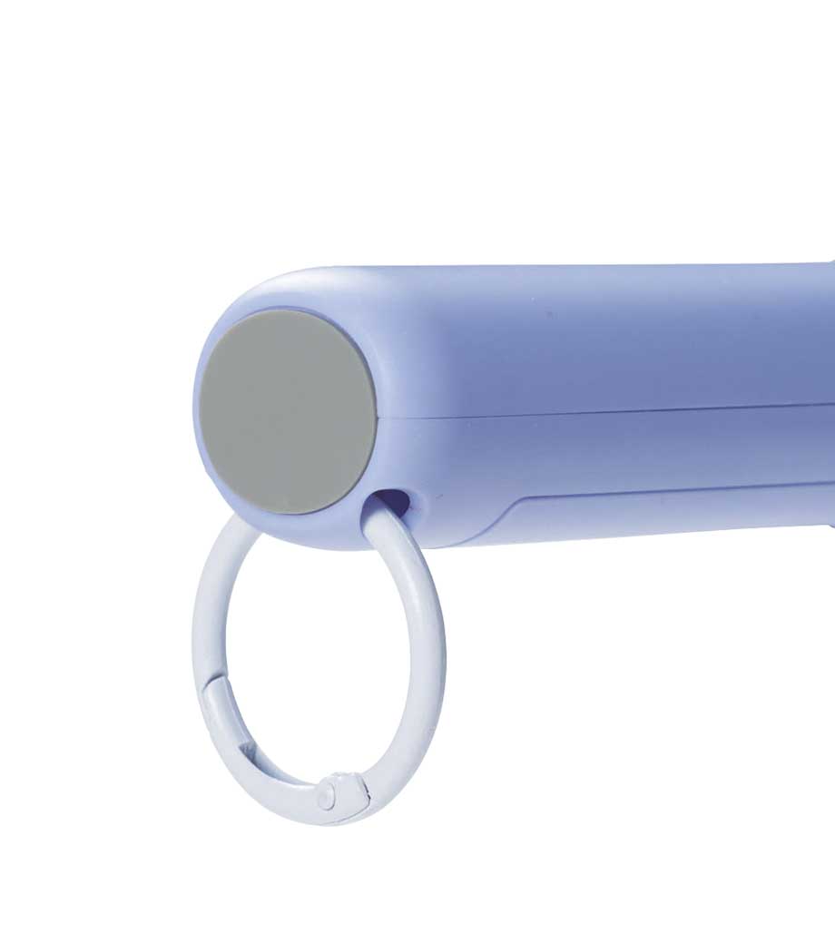ポータブル首かけハンディファンは、首かけ・ハンディ・スタンドと3WAYに使い分けのできる乾電池タイプのファン。ヘッド部分は上下に約90度の角度調節が可能です。付属のネックストラップを使えば、手ぶらで顔やお好みの場所に風をお届け。ストラップは安全パーツ付き。過度の力が加わると外れる仕様で安心ですね。持ち手部分が太くなっていてハンディ・スタンドの際には安定感があります。ベーシックなモノクロに加えて、人気のくすみカラーも選べる4色展開です。