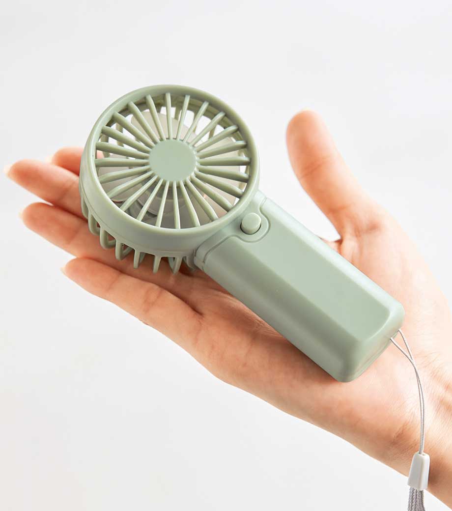 コンパクトポータブルファンは、とことんコンパクトにできる持ち運びに最適な扇風機です。ファン部分も収納可能です。