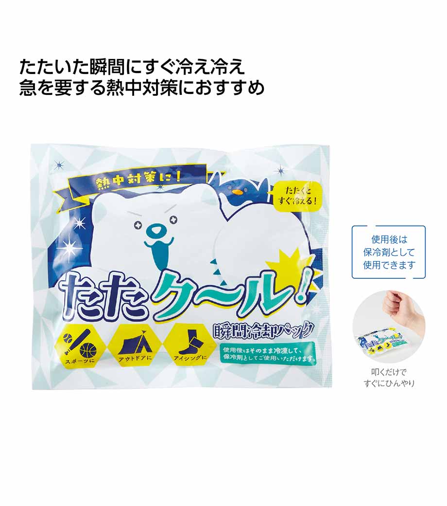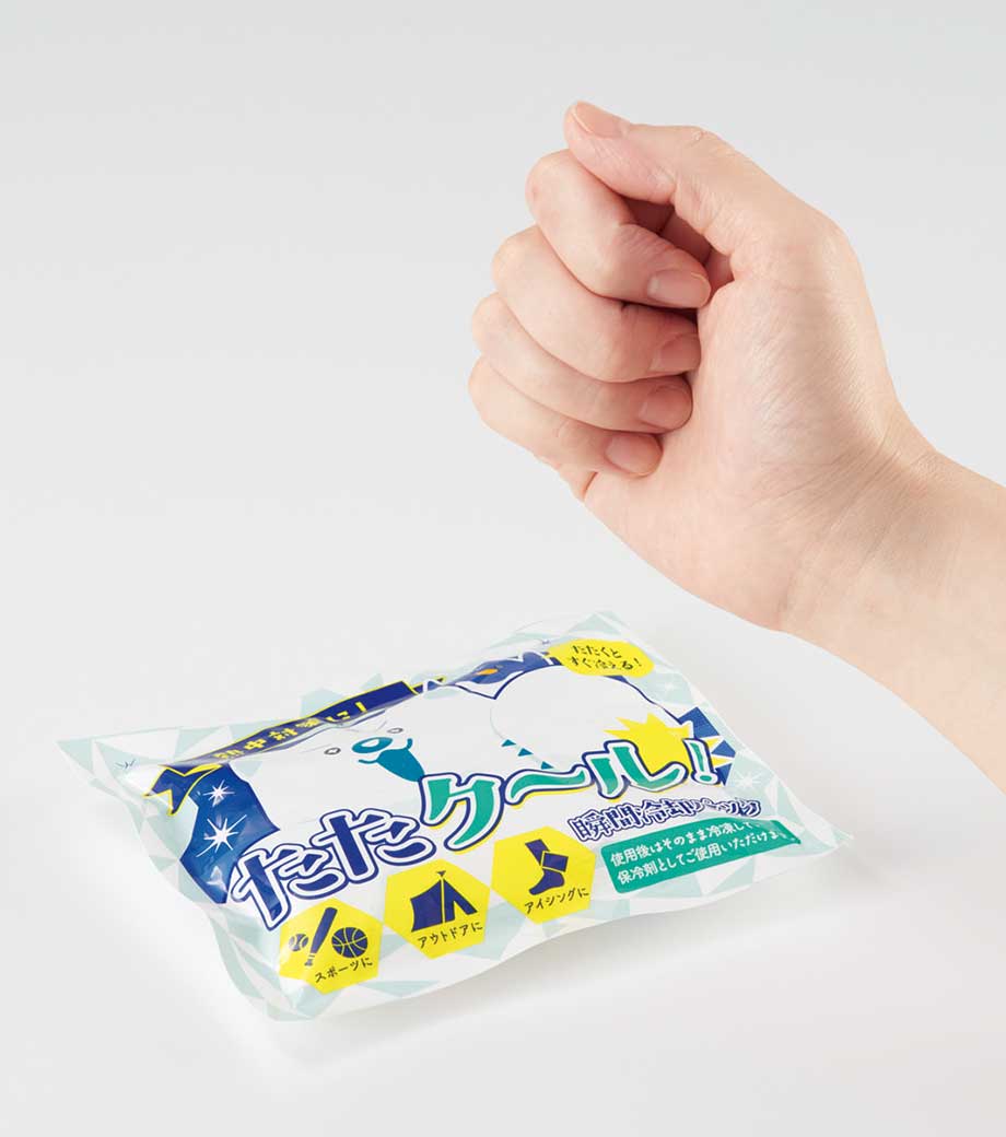 自分のタイミングで冷やせるので、イベントやキャンペーンなどで配るのもオススメです。かき氷のようなポップなパッケージも注目度大ですね。