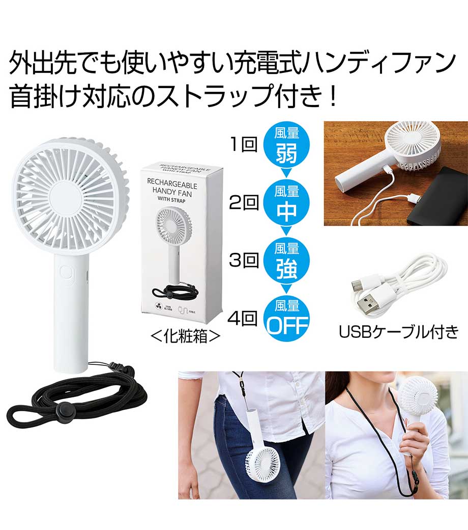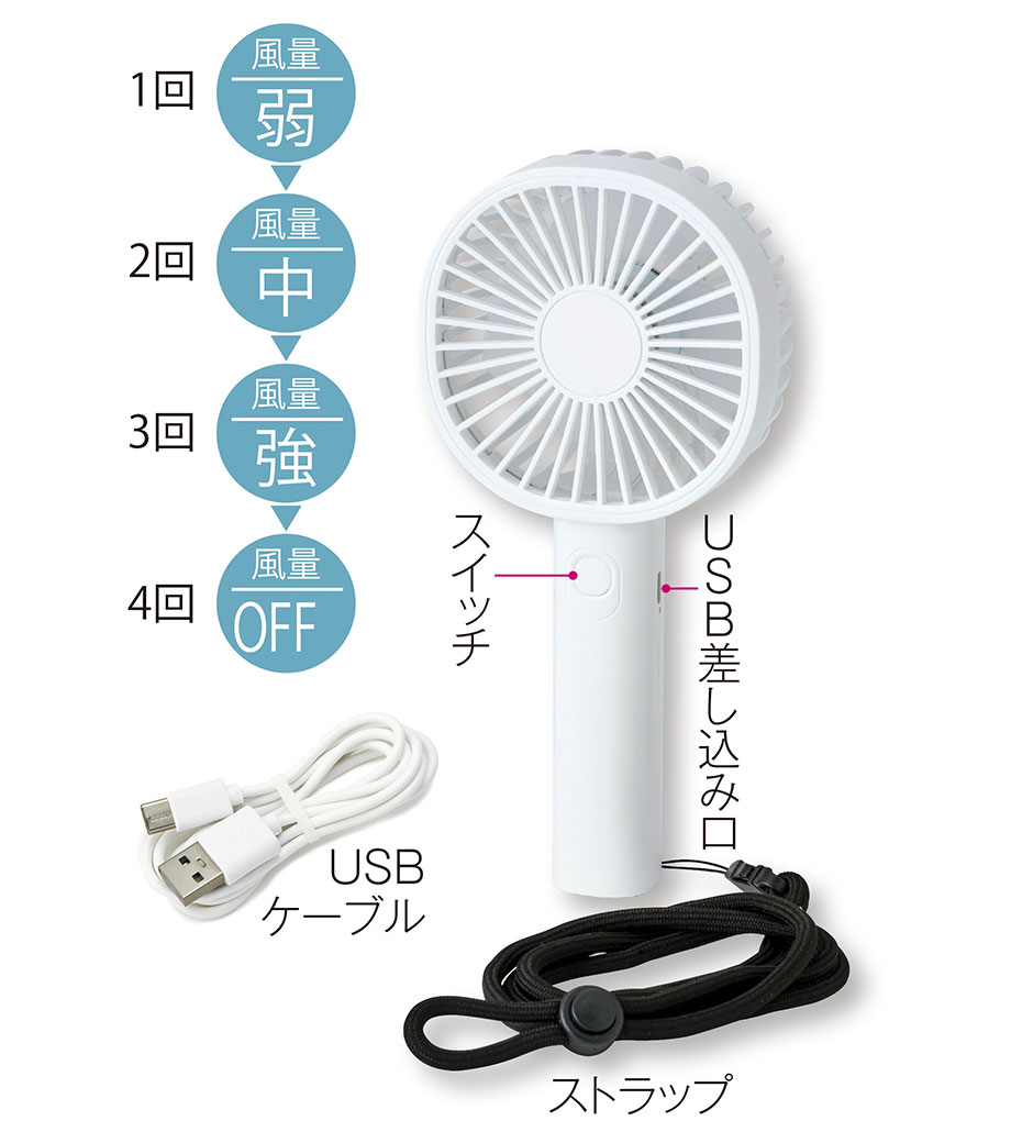 充電して繰り返し使えるハンディファンは夏の熱中症対策に大人気の商品。ブランドロゴを印刷して夏の購入特典キャンペーンなどにいかがでしょうか。