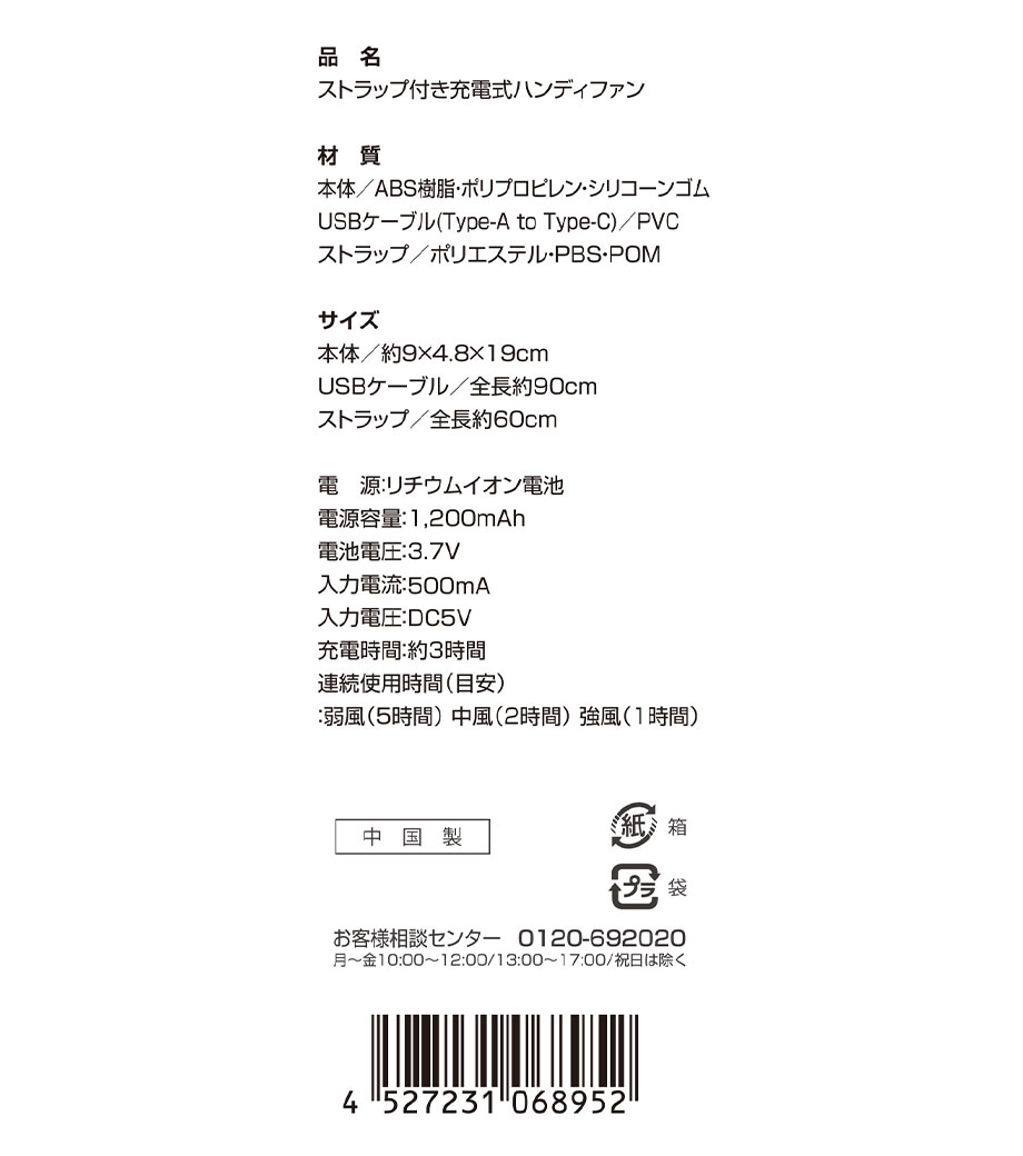 2WAYハンディファンは、屋内外を選ばず使える手持ちと卓上の2WAY仕様。持ち手を折りたたむと卓上型に変身します。付属のストラップは手持ちの際の落下防止に活躍。単3形乾電池2本で約5時間連続使用可能です。