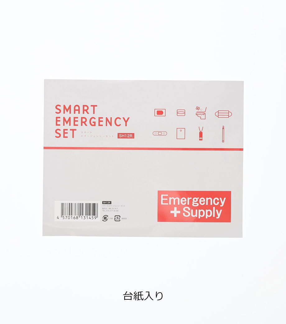 スマートエマージェンシーボトル(LEDタイプ)は、ウォーターボトルに入った防災セット。中身の見えるウォーターボトルに、カラビナキーホルダー・ライト・ストラッフ薄型ホイッスル・アルミブランケットをセットしました。化粧箱には、緊急時に役立つハザードマップポータルサイトへのQRコードを表示しています。災害時にも持ち出しやすく保管にも便利。家庭や職場、マイカーに備えておくと安心です。
