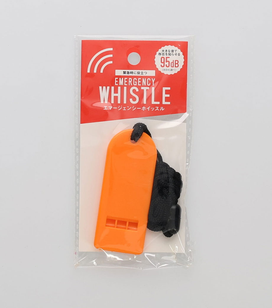 瓦礫などで閉じ込められてしまった場合には、ホイッスルを吹くことで周囲の人に自分の居場所を知らせることが出来ます。