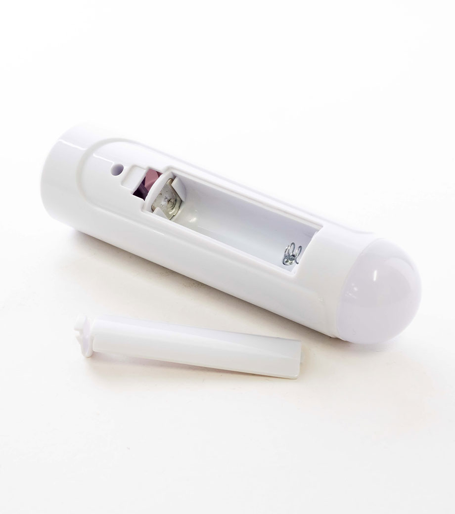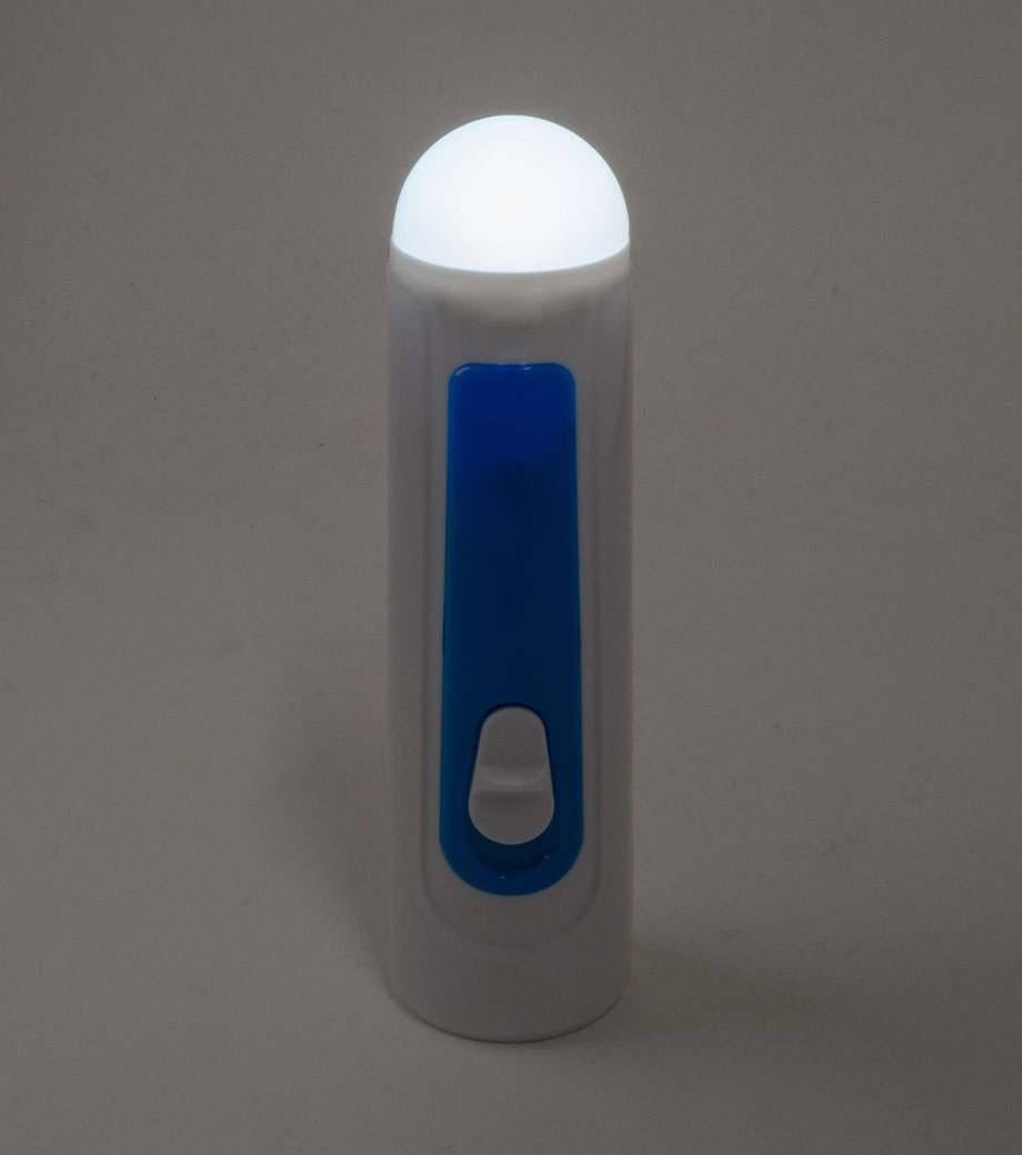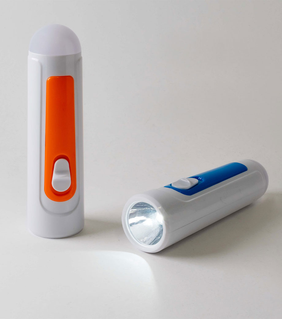 スリムでコンパクトな2WAYライトです。懐中電灯としてだけでなく、立てた先端にも光源があるので、ランタンのような使い方もできます。乾電池式なのでいざというときの充電切れの心配がありません。