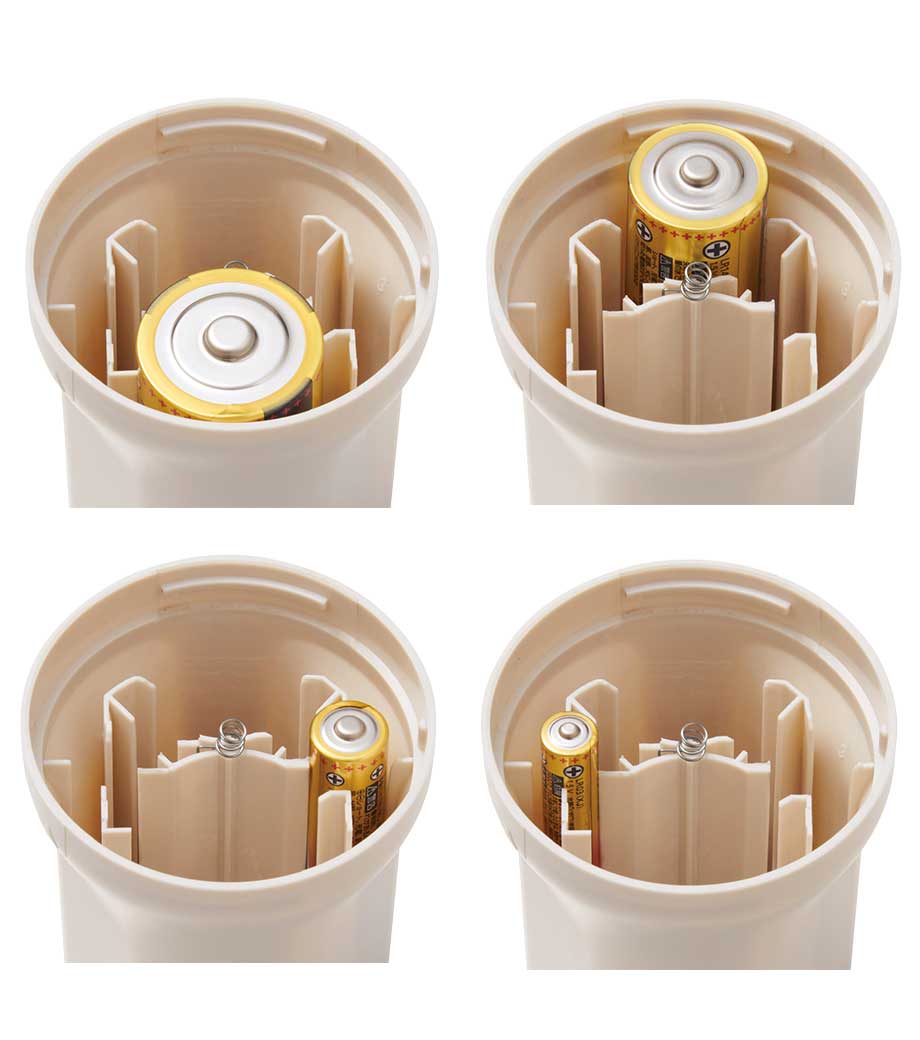 スリムでコンパクトな2WAYライトです。懐中電灯としてだけでなく、立てた先端にも光源があるので、ランタンのような使い方もできます。乾電池式なのでいざというときの充電切れの心配がありません。