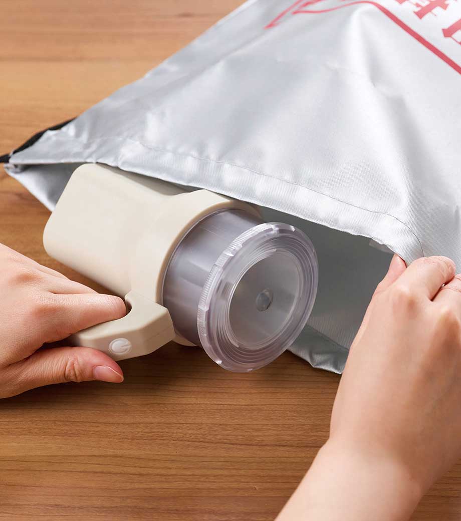 もしもの事態に備えておきたい定番アイテムを揃えた防災セットです。持出袋は女性やお子様も持ちやすい軽量な不織布製。水の確保に最適な給水バッグやルームライトにもなる2WAY仕様のLEDライトなど、いざという時に助かるグッズが入っています。