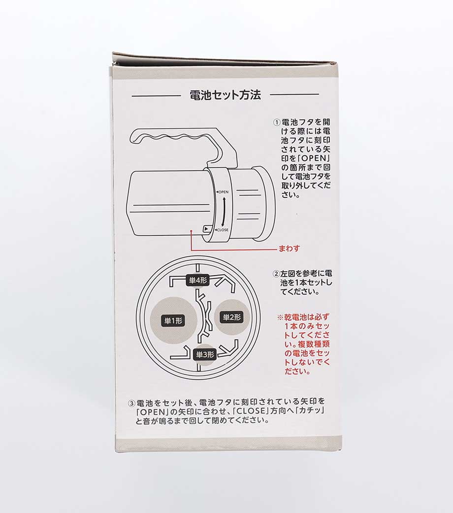1色印刷ができるので、名入れ印刷でオリジナルのライトを制作できますよ。アウトドアショップの来店プレゼントや、防災訓練の参加記念品などにいかがでしょうか。イラスト入りの化粧箱入りで、小ロットでの注文もOK!