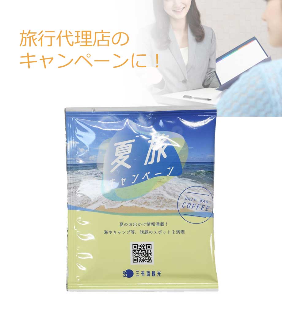 カップにセットしてお湯を注ぐだけのドリップコーヒーは、忙しい日常の中にもホッと安らげる瞬間をもたらしてくれます。誰もが貰って嬉しいノベルティになりますよ。
