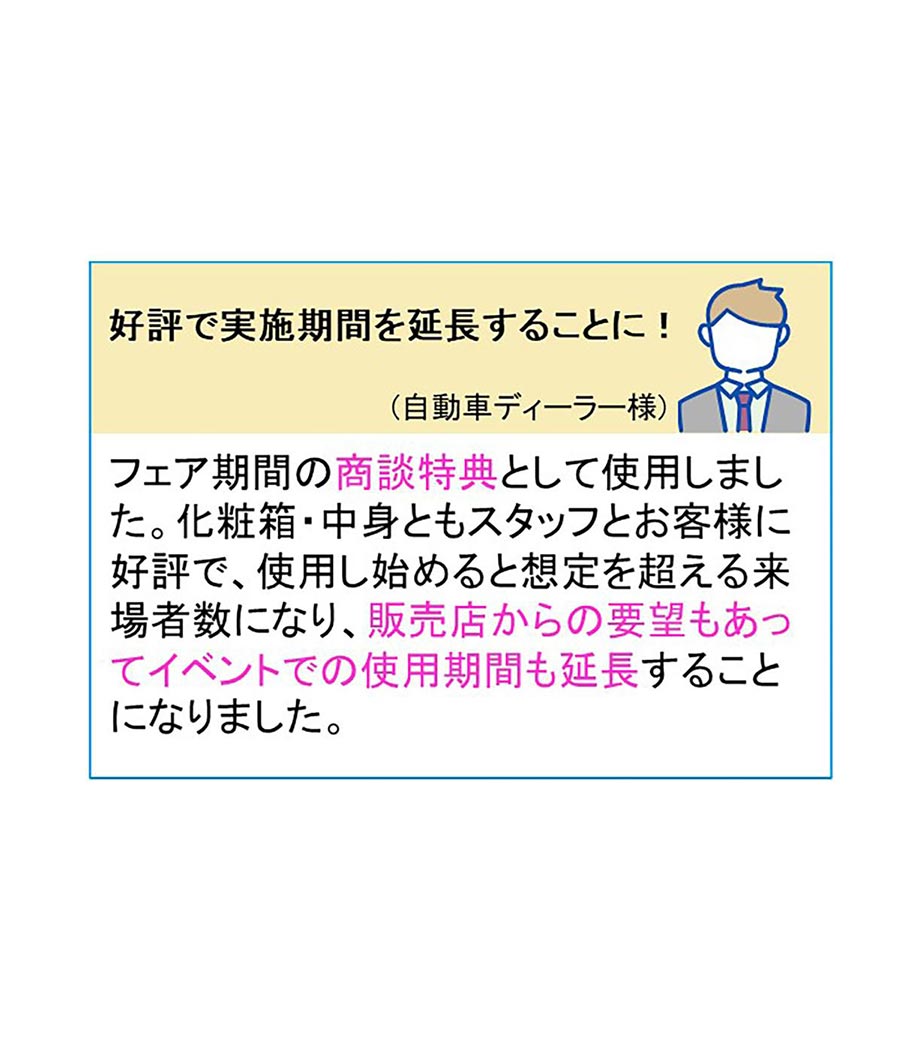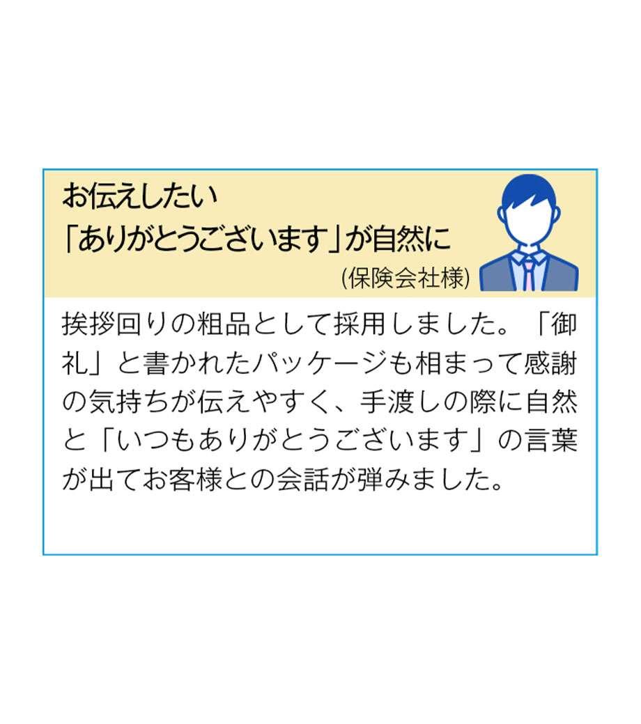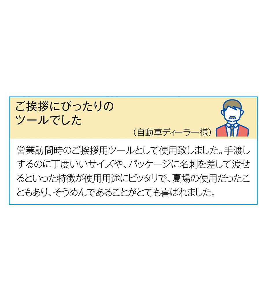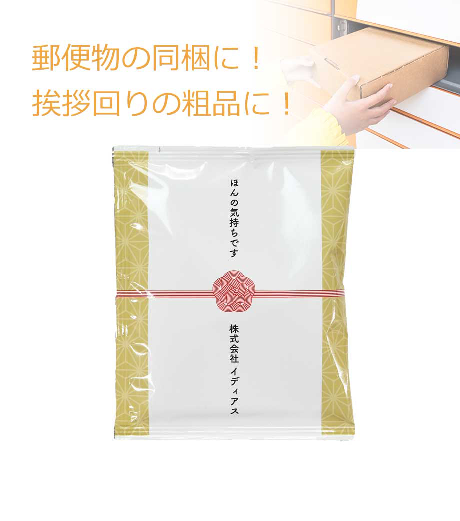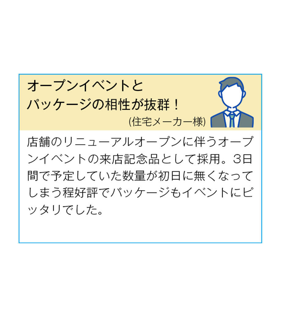 パッケージに名刺やショップカードを差し込めるので、ご挨拶品としておすすめです。