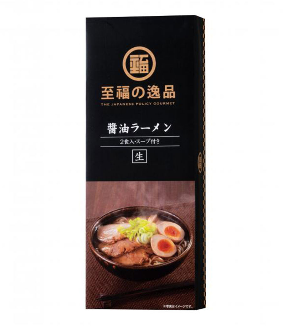至福の逸品 醤油ラーメン2食はコクと旨みが特長の生麺タイプのラーメン。箱入りのパッケージはお客様にサッと手渡しできて、大勢の人が集まる展示会の来場記念品としておすすめです。食品は幅広い年代に喜ばれる人気のギフトノベルティ。高見えするデザインパッケージで、集客の目玉になること間違いなしです。