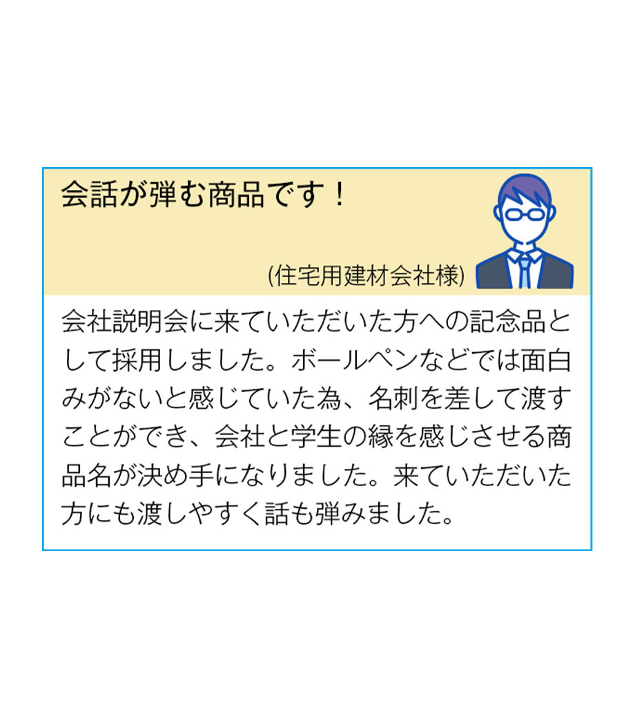 パッケージにはフルカラーでオリジナル印刷が可能です。周年記念品や開店記念品、内祝いや結婚式のプチギフトまで幅広いシーンで選ばれます。印象に残るユニークなノベルティとして、イベントグッズとしても人気です。