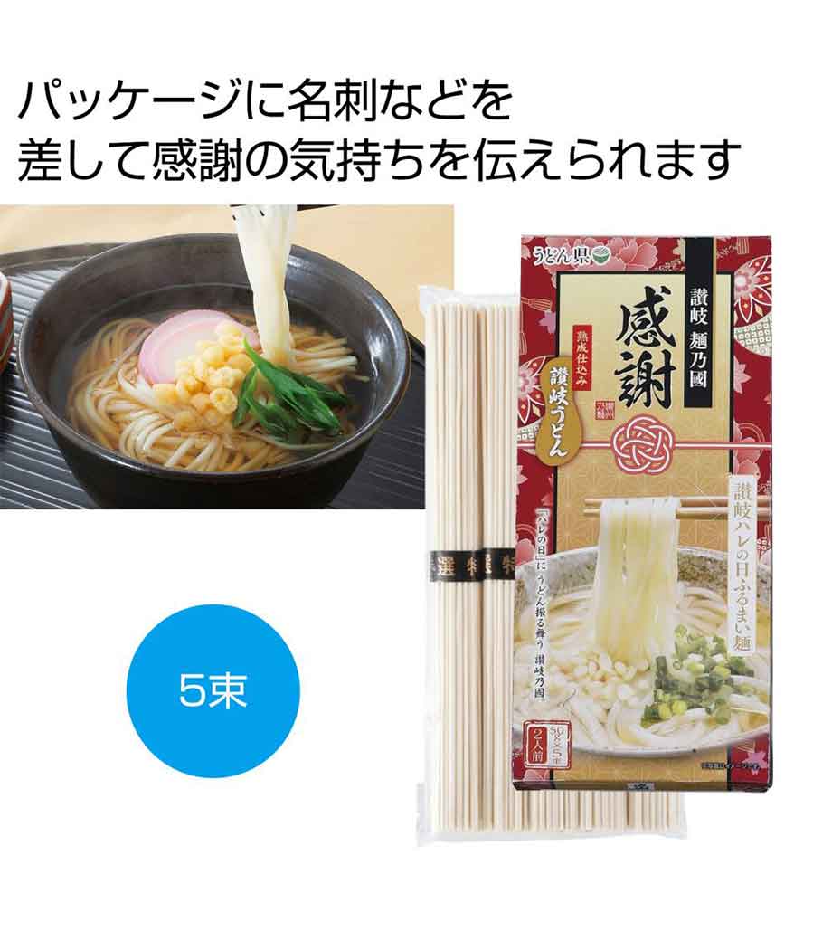 感謝 讃岐うどん ハレの日ふるまい麺5束は讃岐うどん専用一等小麦粉を使用した乾麺。小麦の風味ともっちりした歯ごたえが楽しめます。