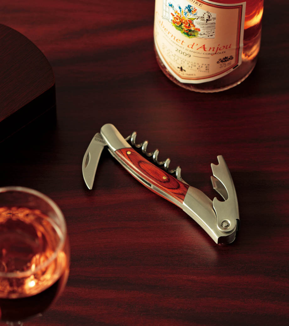 「木箱入ワインオープナー」は、本体の一部に天然木を使った高級感のあるワインオープナー。くつろぎの時間をゴージャスに演出してくれます。プレミアム感たっぷり、ずっしりとした木箱入で、記念品に好評です。