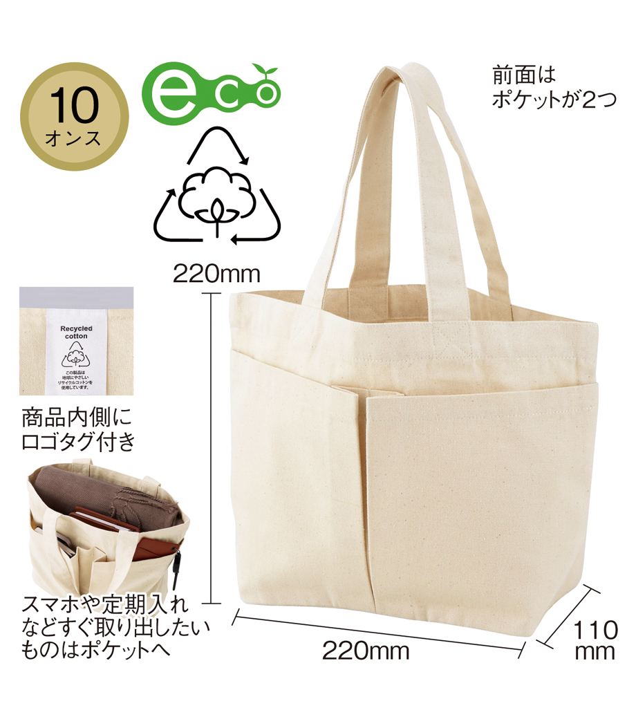 スフィア・リサイクルコットン2ポケットトートは、資源を有効活用し地球に優しいリサイクルコットン素材を使用したサステナブルなエコバッグ。ナチュラルでやわらかな風合いで、縫製もきれいな安心の品質です。
