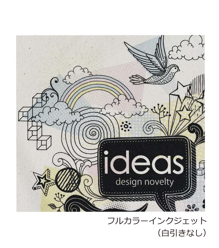 名入れはポケット面に、1色またはフルカラーでの印刷が可能。ノベルティとしてはもちろん、アーティストグッズやキャラクター物販としてもおすすめ。