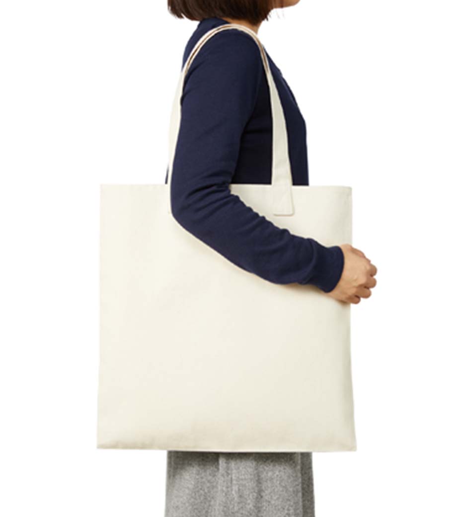 「厚手コットンバッグ トート M」は、地球環境にやさしく、丈夫な厚手コットン100%。自然素材のナチュラルな風合いが楽しめます。使いやすいミドルサイズ。持ち手が長めなので、手持ちでも肩掛けでもOK。荷物やシーンに合わせて使い分けられます。本体色は素材の色合いを生かしたナチュラル、スタイリッシュなブラック・ネイビーの3色から選べます。