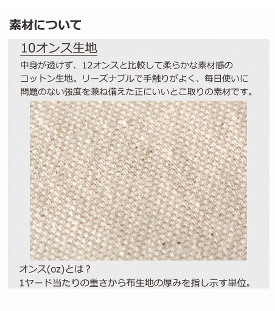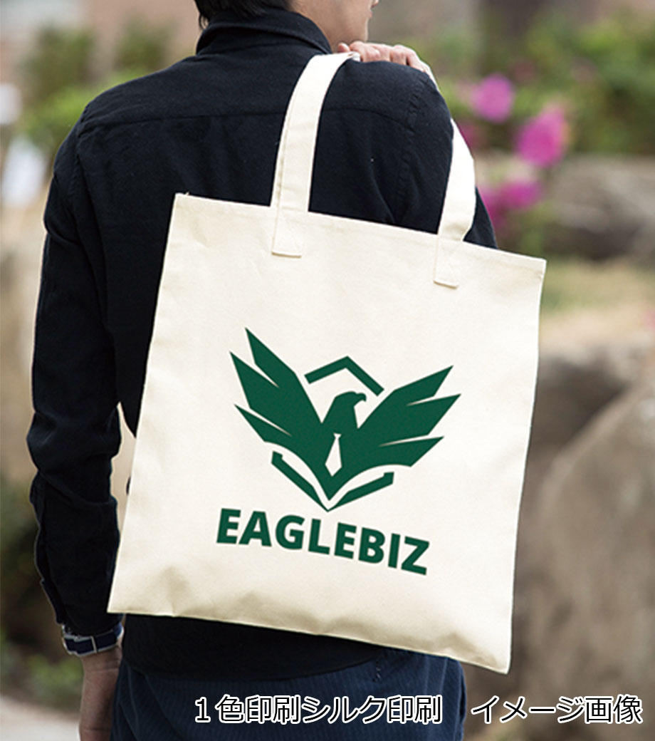 B4がラクラク納まる大判バッグは10オンスとちょうどよい重量感と厚みで、荷物が増えても安心です。オリジナルの名入れも大きく入るので、販促品や展示会、イベントなどのノベルティとしてだけでなく、オシャレなロゴの名入れで学生向けのキャンバスバッグとしても最適ですね。