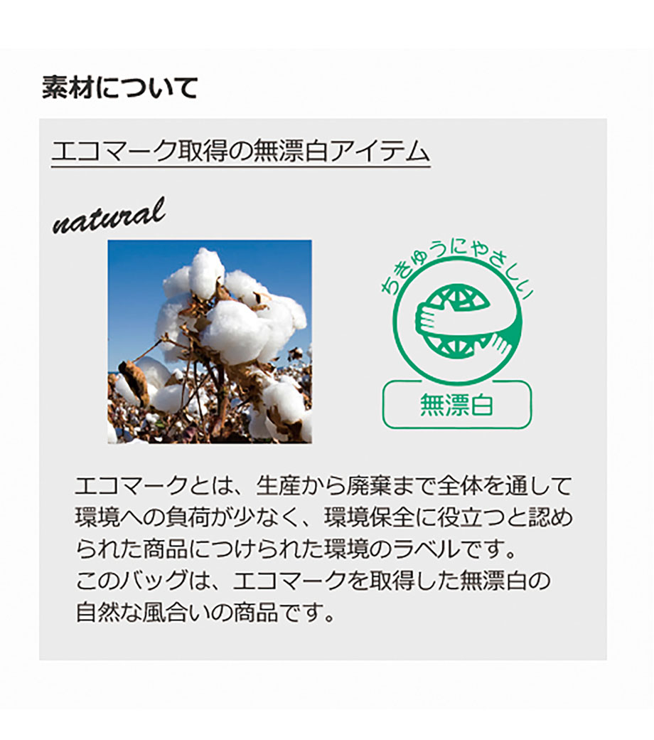 キャンバスボトルバッグは、750mlのワインボトルがすっぽりと入る無漂白コットン100%使用のボトル専用バッグです。漂白や染色をしていないので、河川や海を汚すことのない環境にやさしいエコマーク付き商品です。