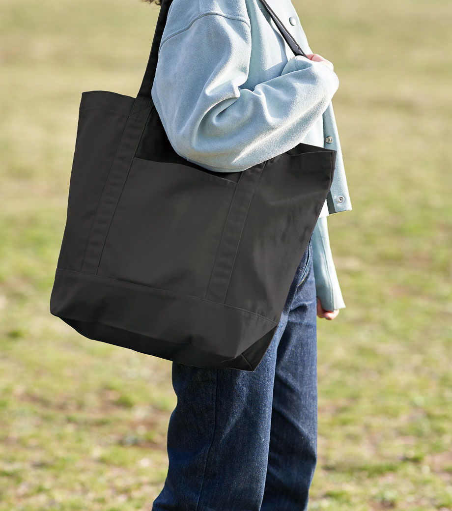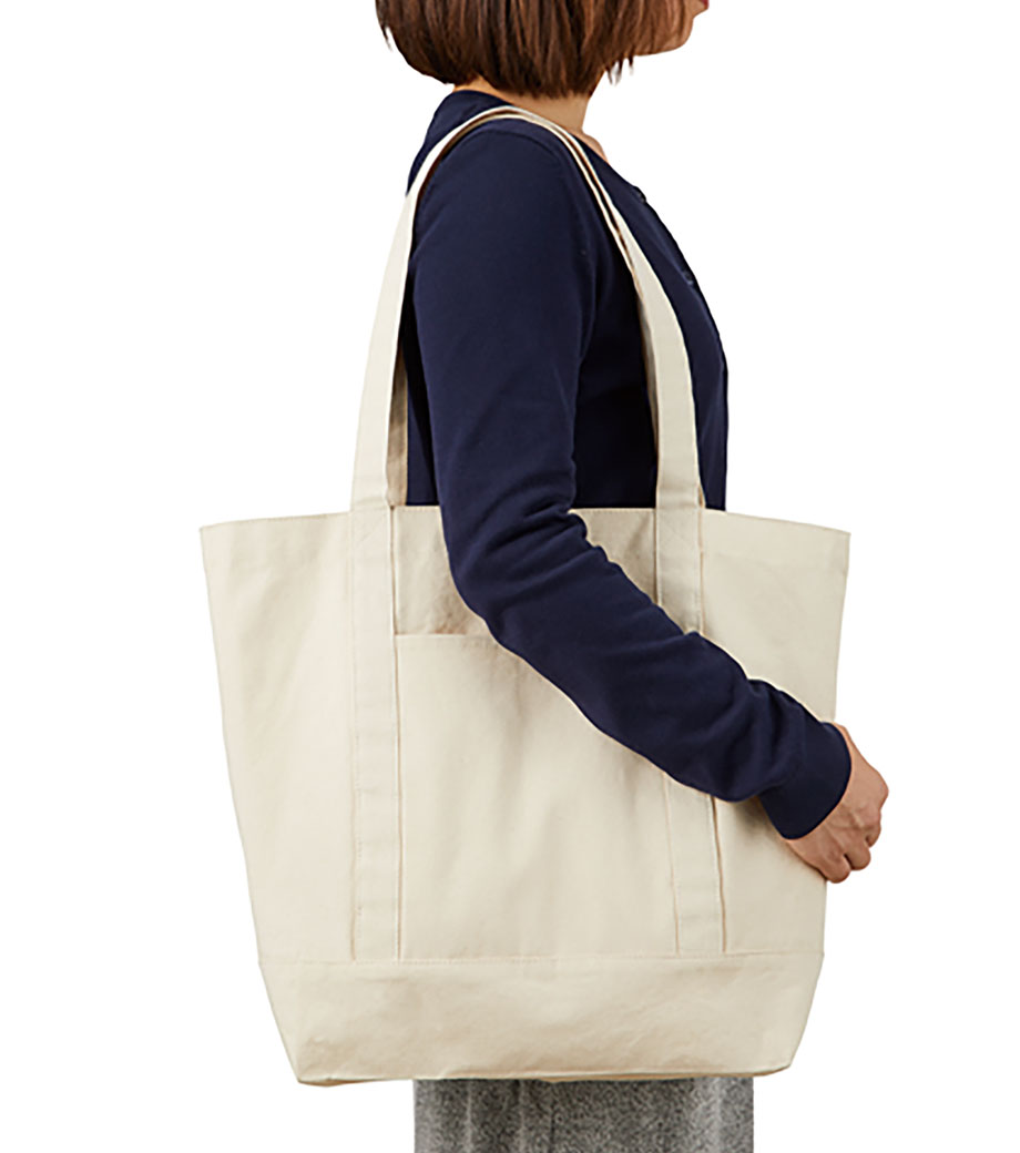 柔かな手触りなのにしっかりと強度のある、生地厚10オンス。頼れる大容量タイプの肩掛けバッグです。イベントやアウトドア、レジャーなどで大活躍します。スーパーでのまとめ買いにも!