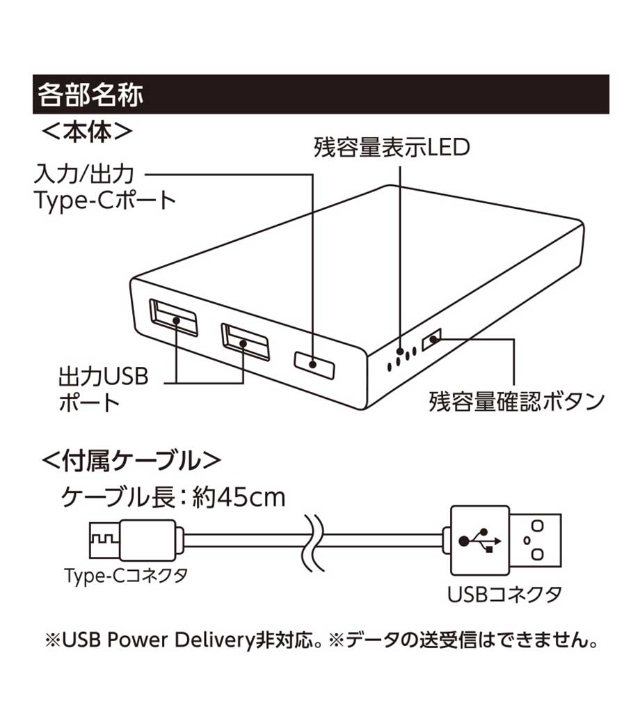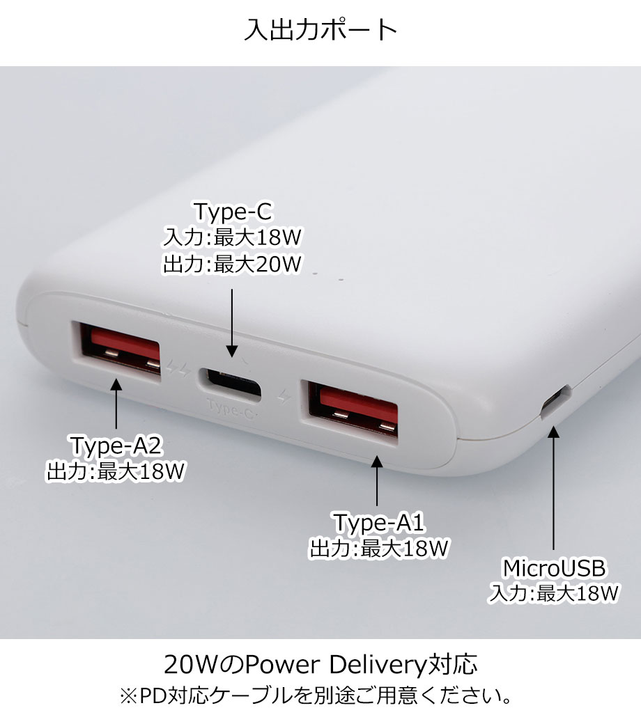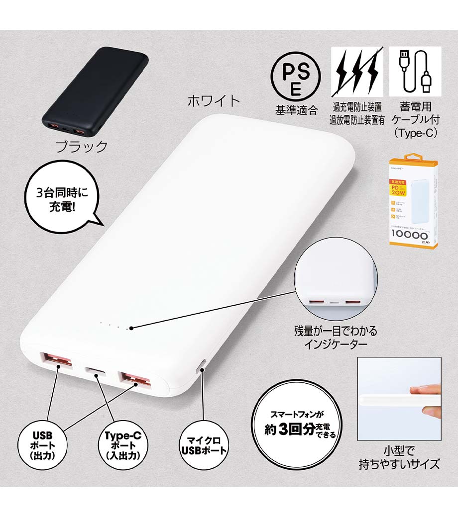 モバイルチャージャー 10000mAh Type-C対応/PSEマーク付
