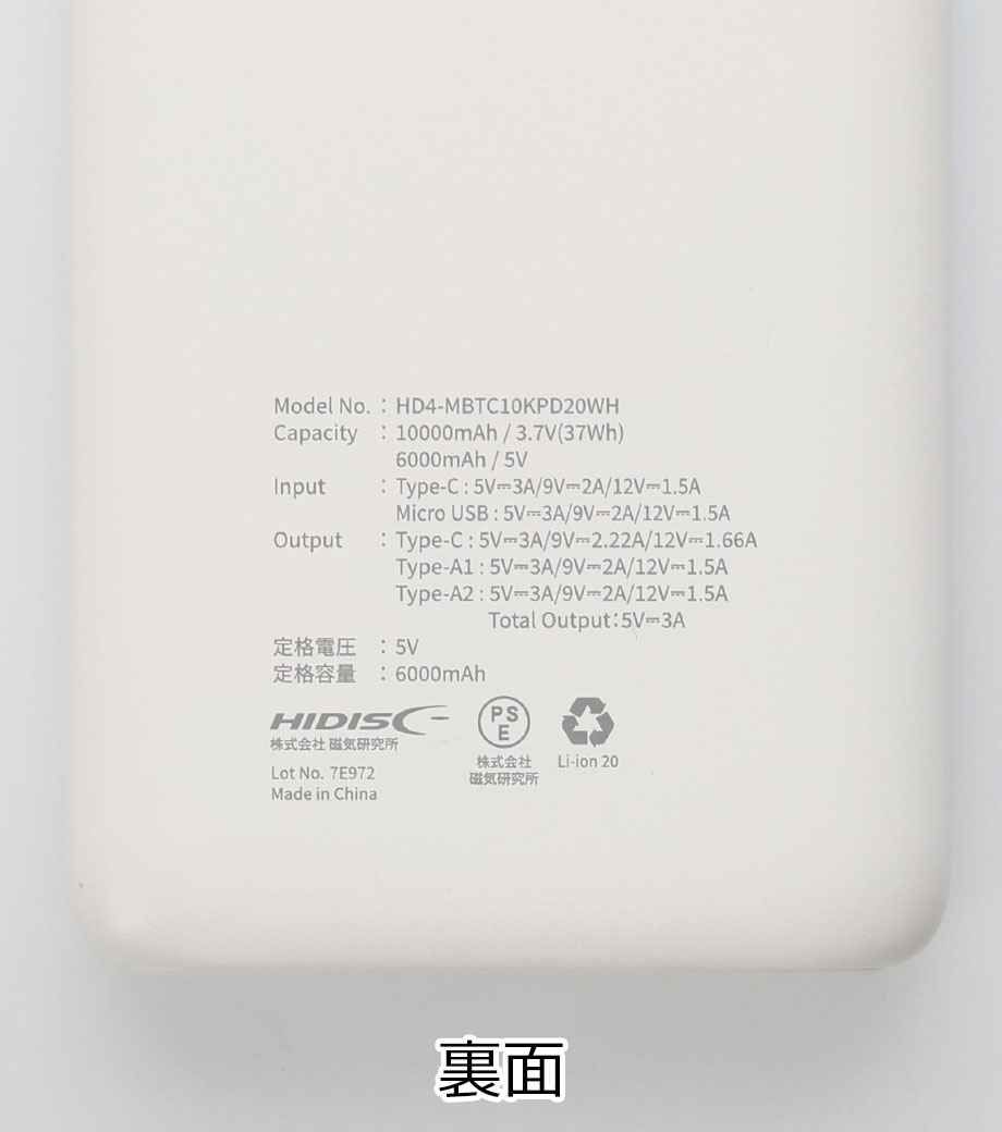 モバイルチャージャー10000デジタル表示付/PSEマーク付