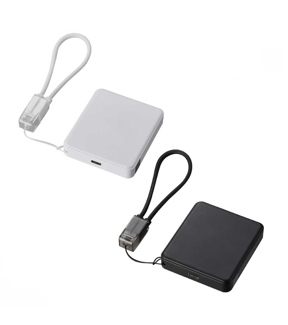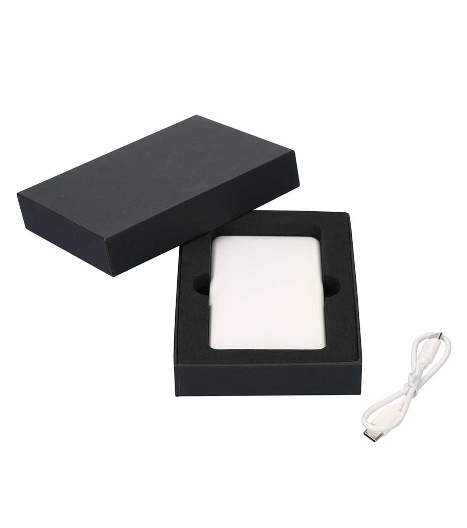 軽量・コンパクトで、ポーチなどに入れて手軽に持ち運べるType-C対応のモバイルバッテリーです。ブラック・ホワイトのベーシックな2色展開で、性別や年齢を問わずお使いいただきやすいカラーです。名入れが映えるシンプルなデザインなので、記念品やノベルティ、成約特典などに幅広くご活用いただけます。白箱入りで物販用としてもおススメ。1色・フルカラー印刷に対応しています。ロゴやキャラクターなどを印刷すれば、オリジナリティの高いグッズを作れます。