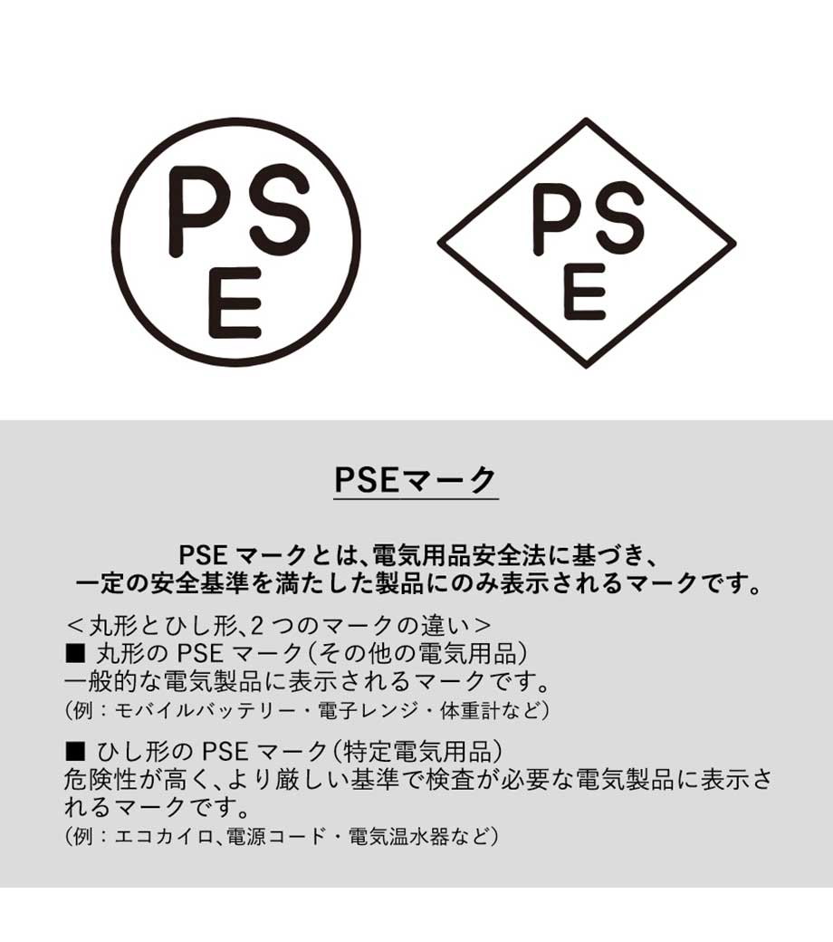 1.全商品PSEマーク・検査証付き
