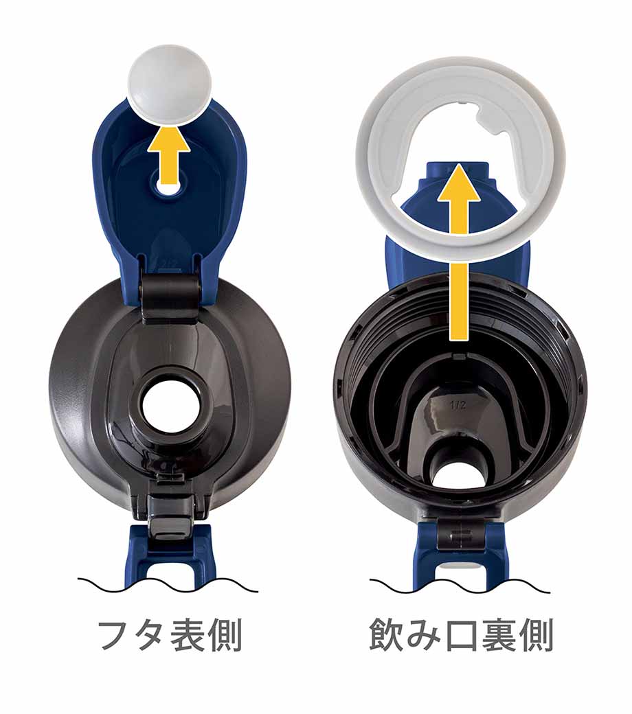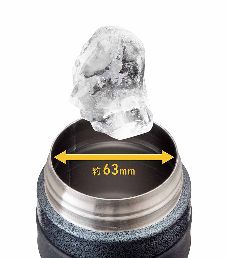 飲み口はワンタッチオープン式なので、飲みたいときに直飲みでゴクゴク飲めます。ロックリング機能付きで、持ち運びにも安心。氷がラクに入る広口タイプなので、キンキンに冷えた飲み物を楽しめます。