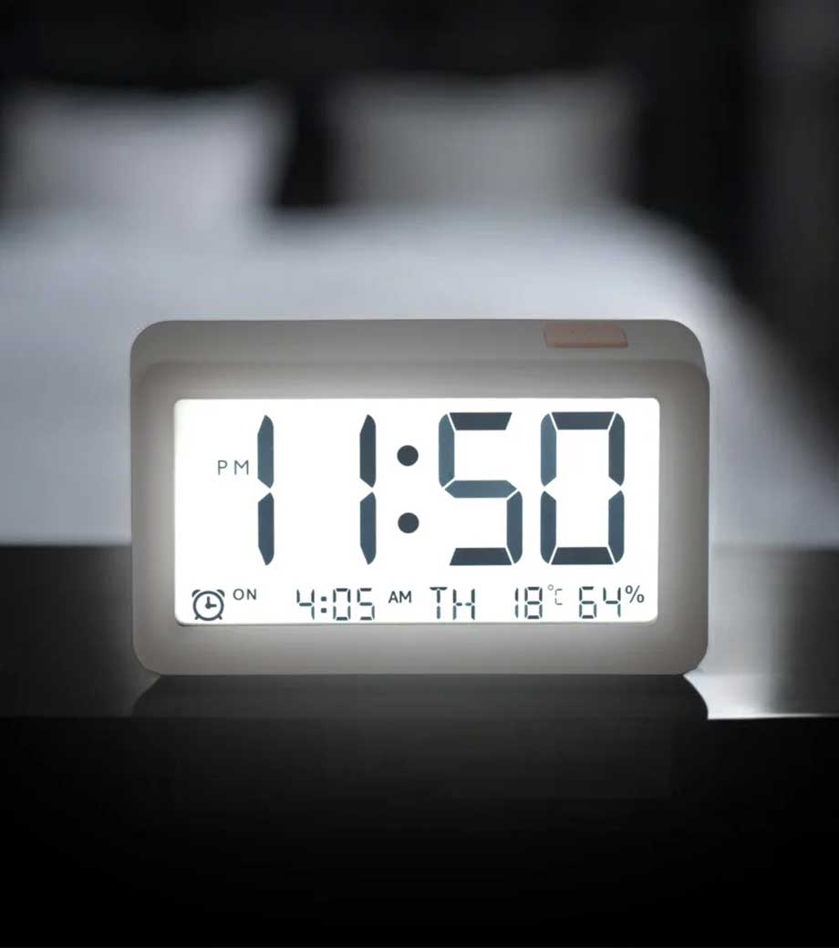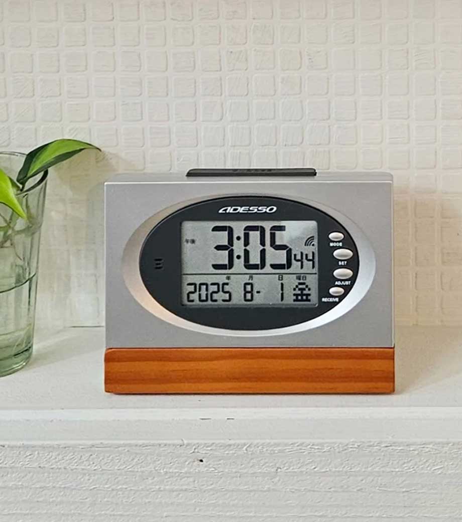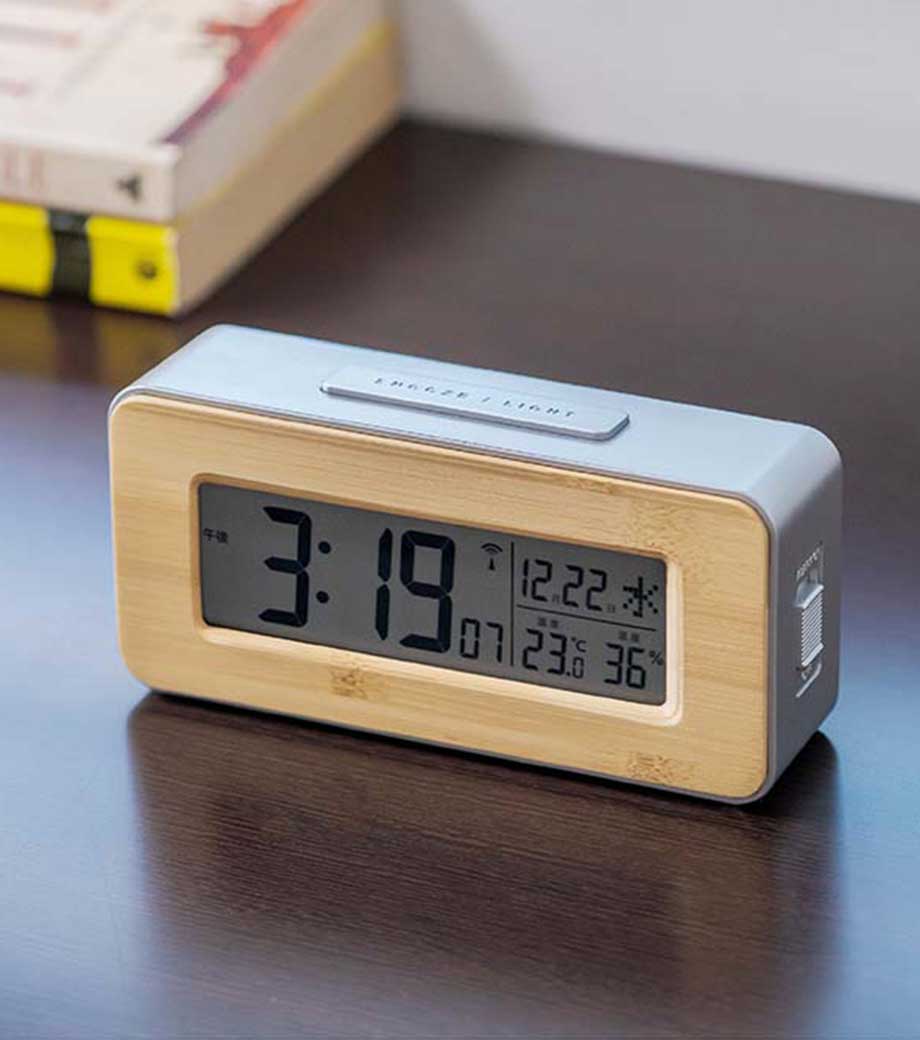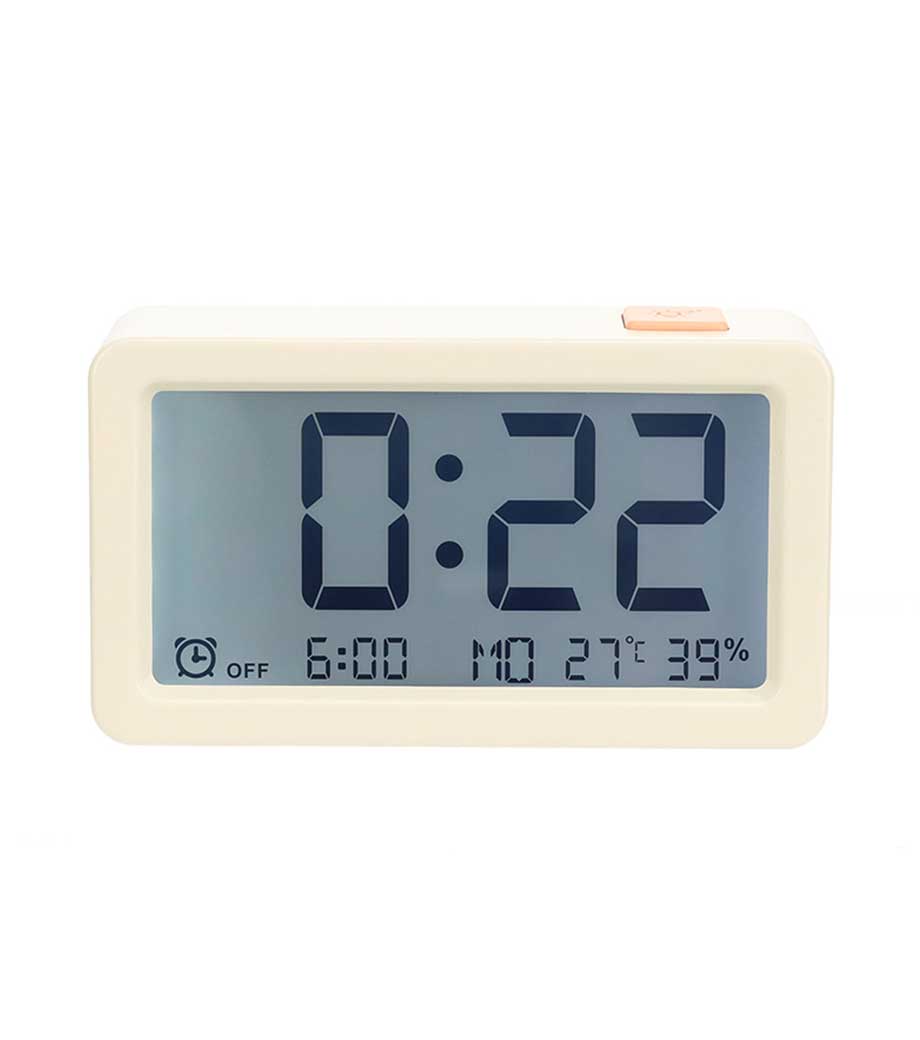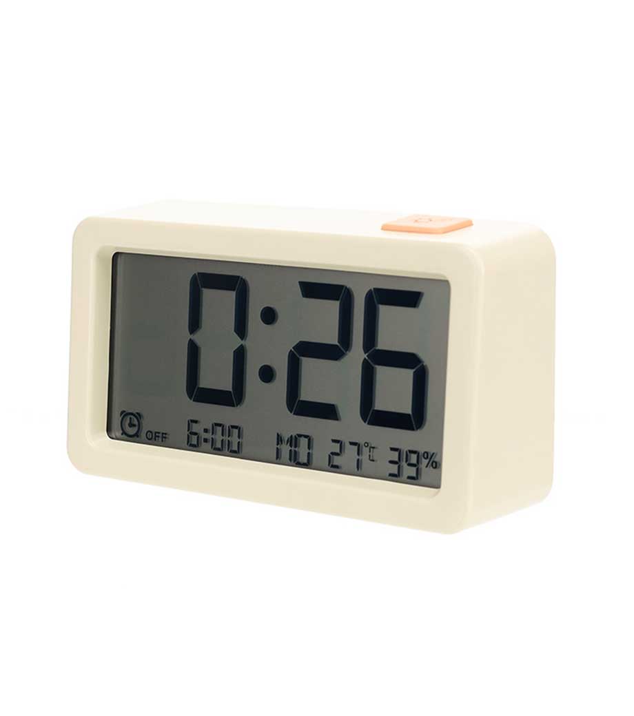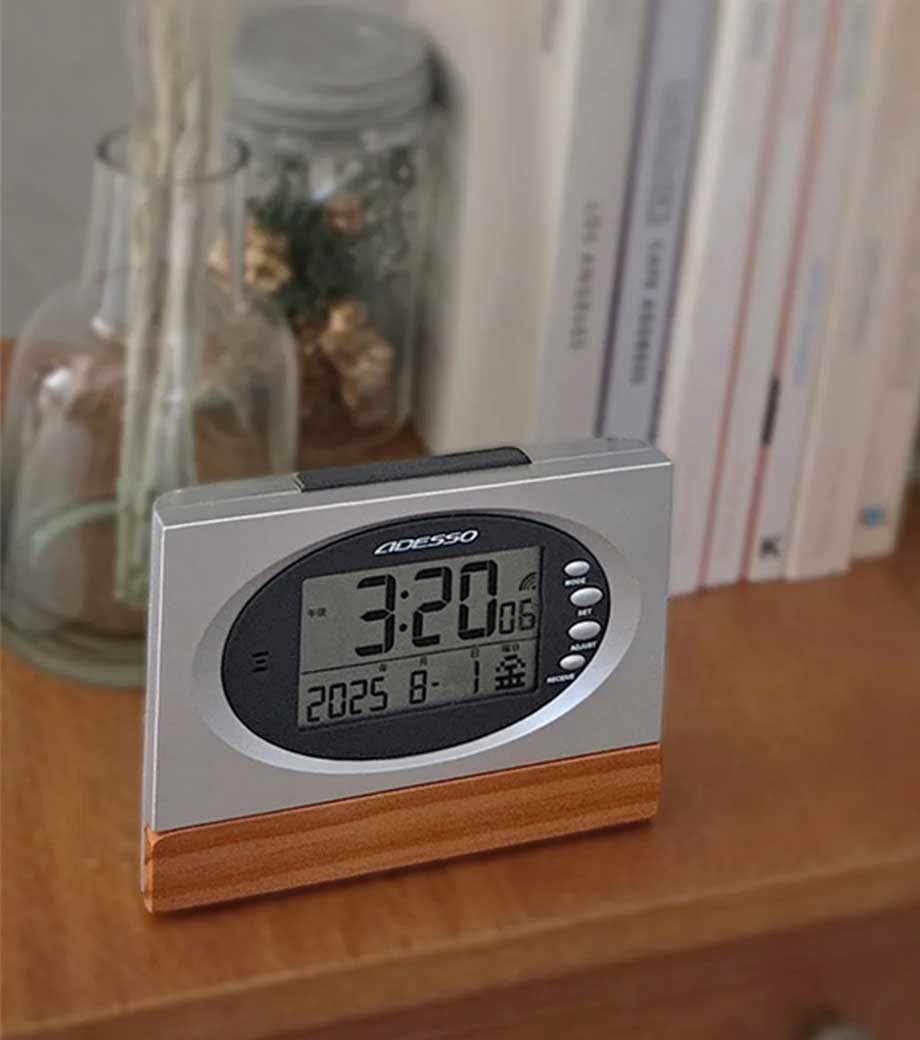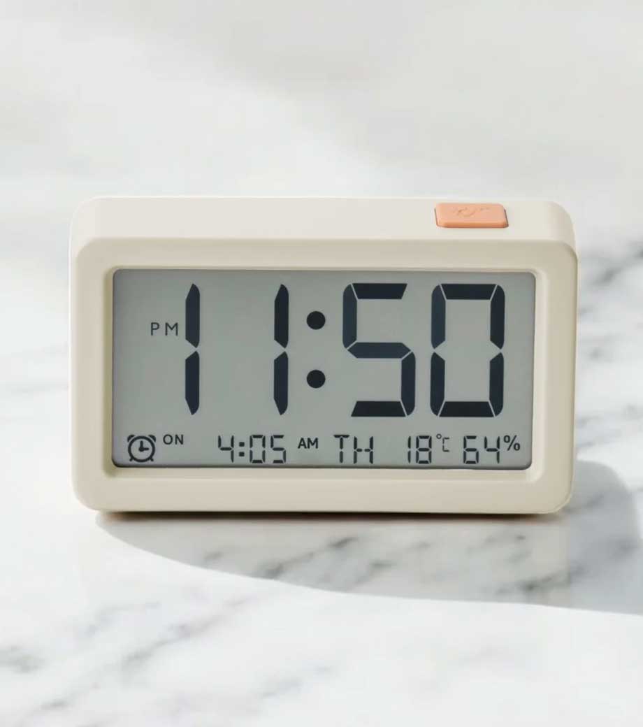 大きな液晶画面で時間がはっきり見える、デジタル表示の時計です。コンパクトなサイズで置き場所を選ばず、ナチュラルなカラーがインテリアに自然と馴染みます。アラーム機能に加え、寝坊防止に便利なスヌーズ機能も搭載。温度と湿度の表示機能付きで、室内の環境管理や熱中症対策にも役立ちます。