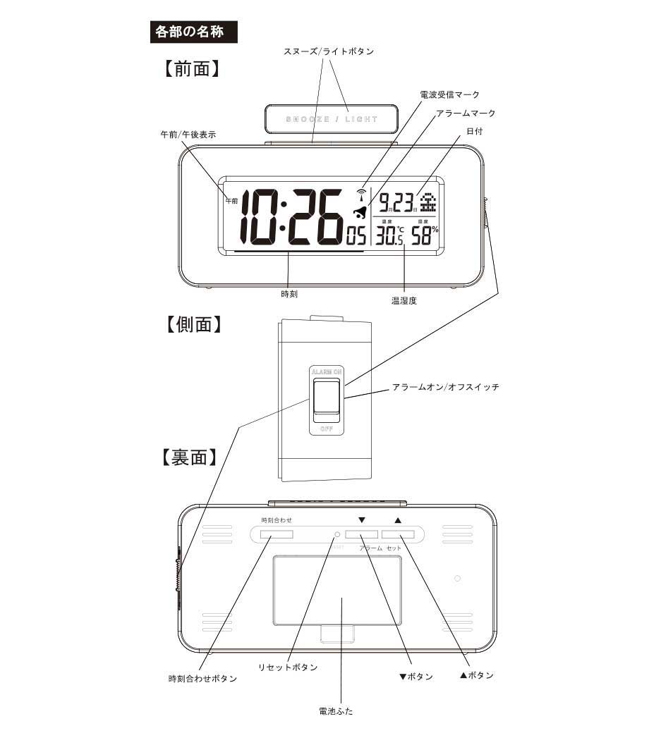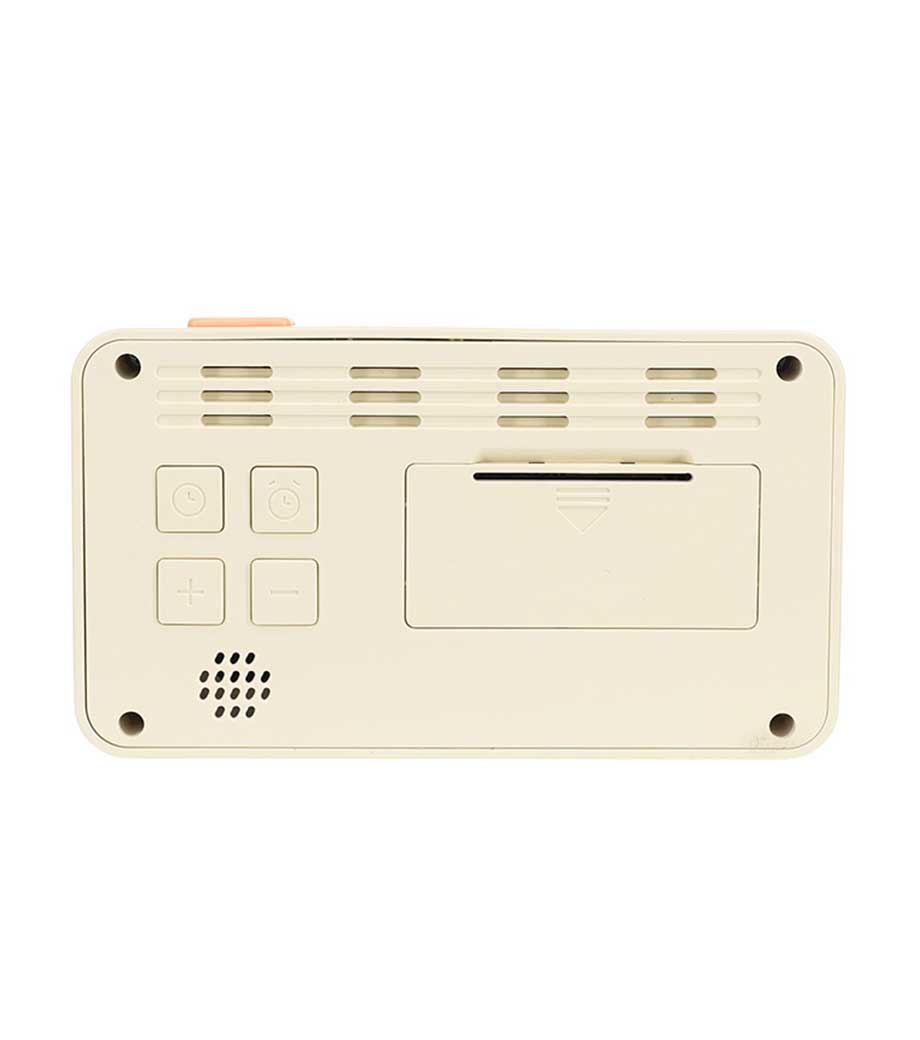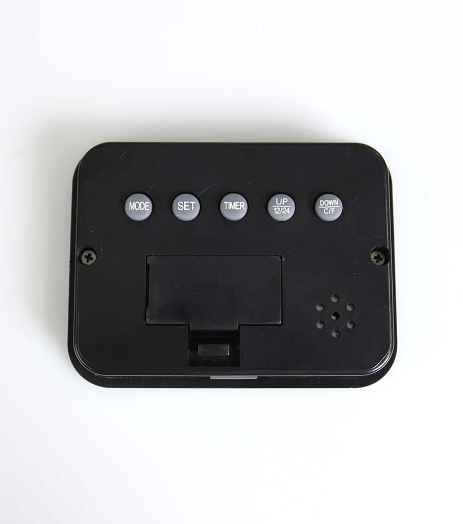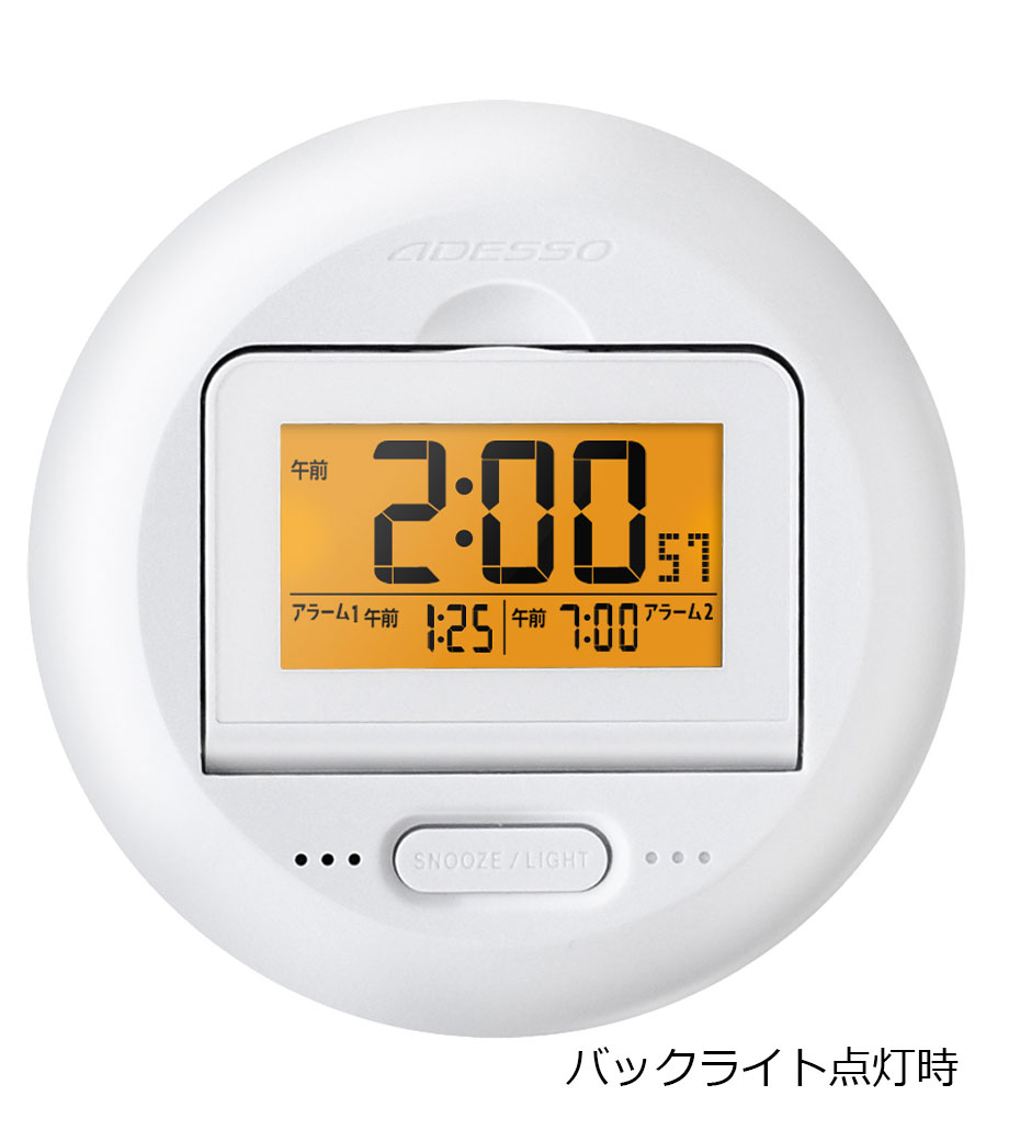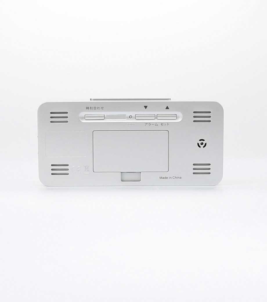 天面のボタンを押せばバックライトが点灯するので、暗い場所でも使える時計です。アラーム・スヌーズ機能付き。手動での時刻合わせも可能です。操作ボタンは正面に配置されているの設定も楽ちん!旅行先へも携帯できます。