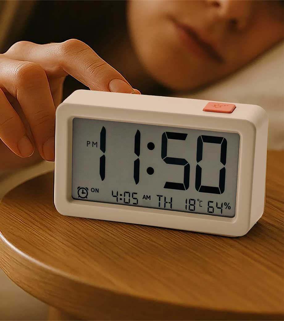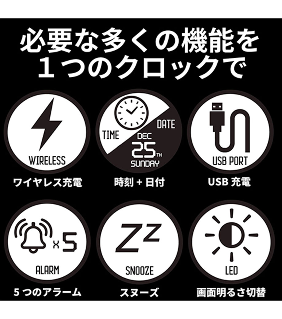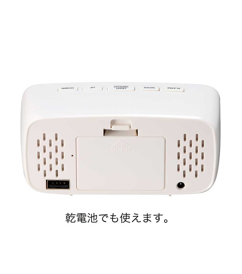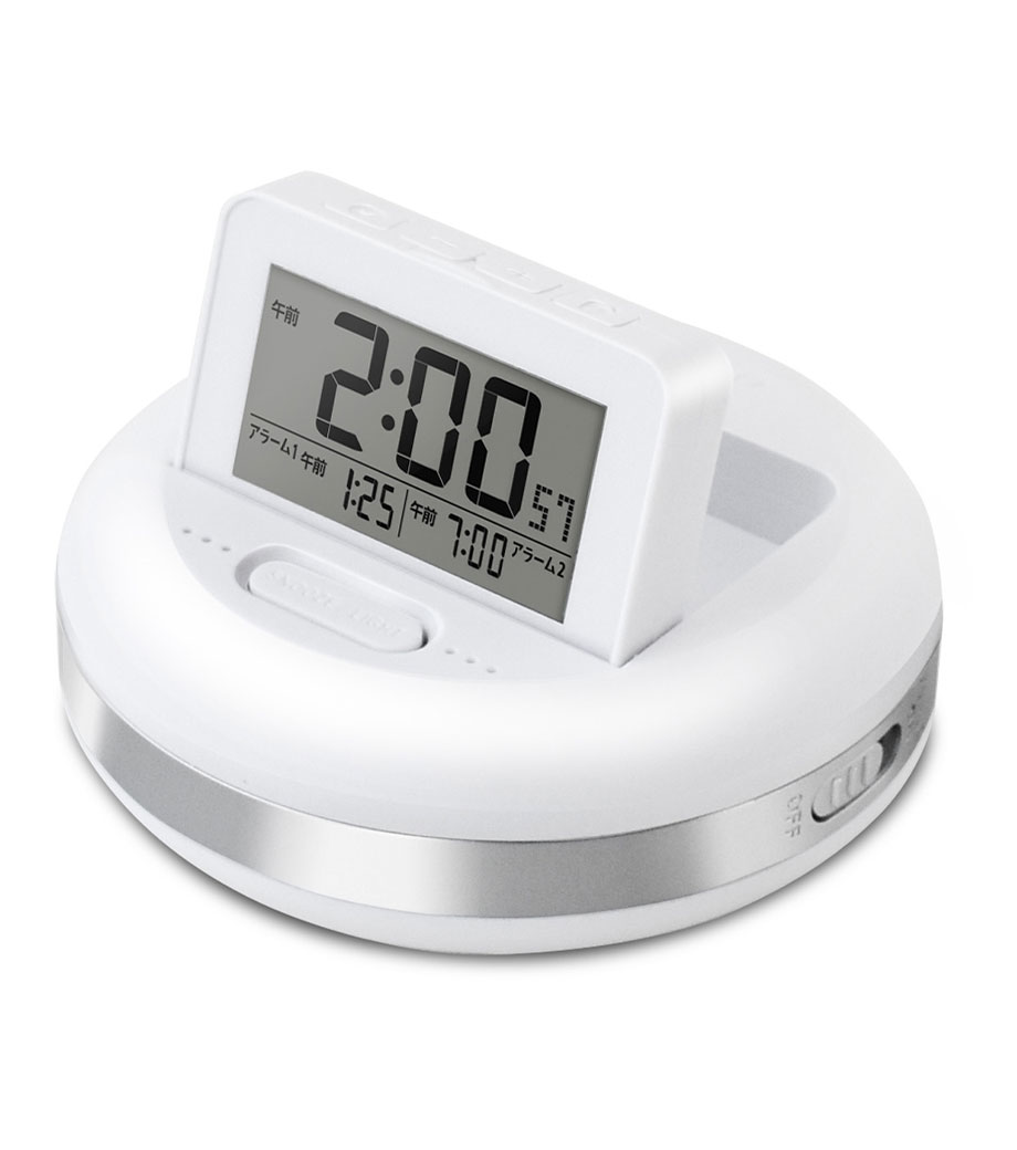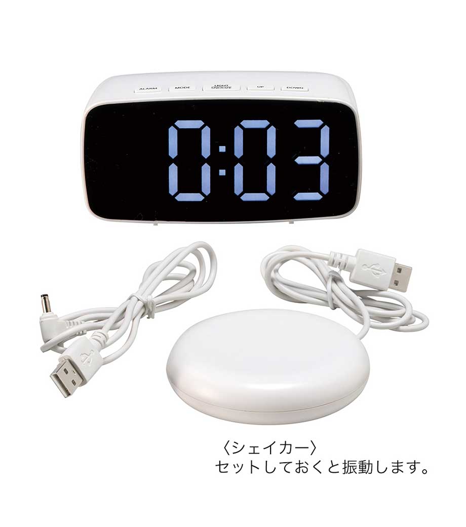 バイブアラームクロックは起床時間を振動でお知らせしてくれる目覚まし時計。早朝の起床時、家族に迷惑をかけたくない時や、勤務先での仮眠目覚ましにも便利です。デジタル時計のアラームと振動のお好きな目覚まし方法が選べます。電源はUSBポートと乾電池(別売)の2通りで、ディスプレイは時間帯で明るさを切り替えられる嬉しいナイトモード機能付。シーンで使い分けられます。