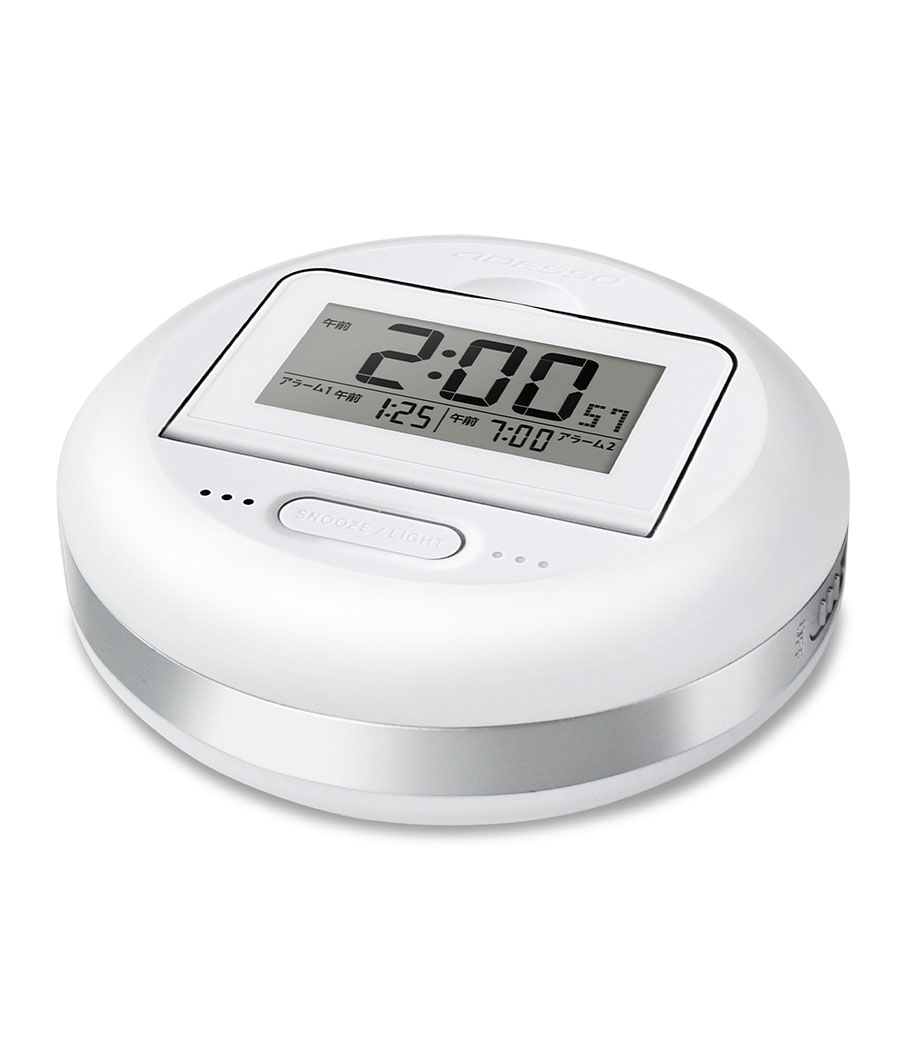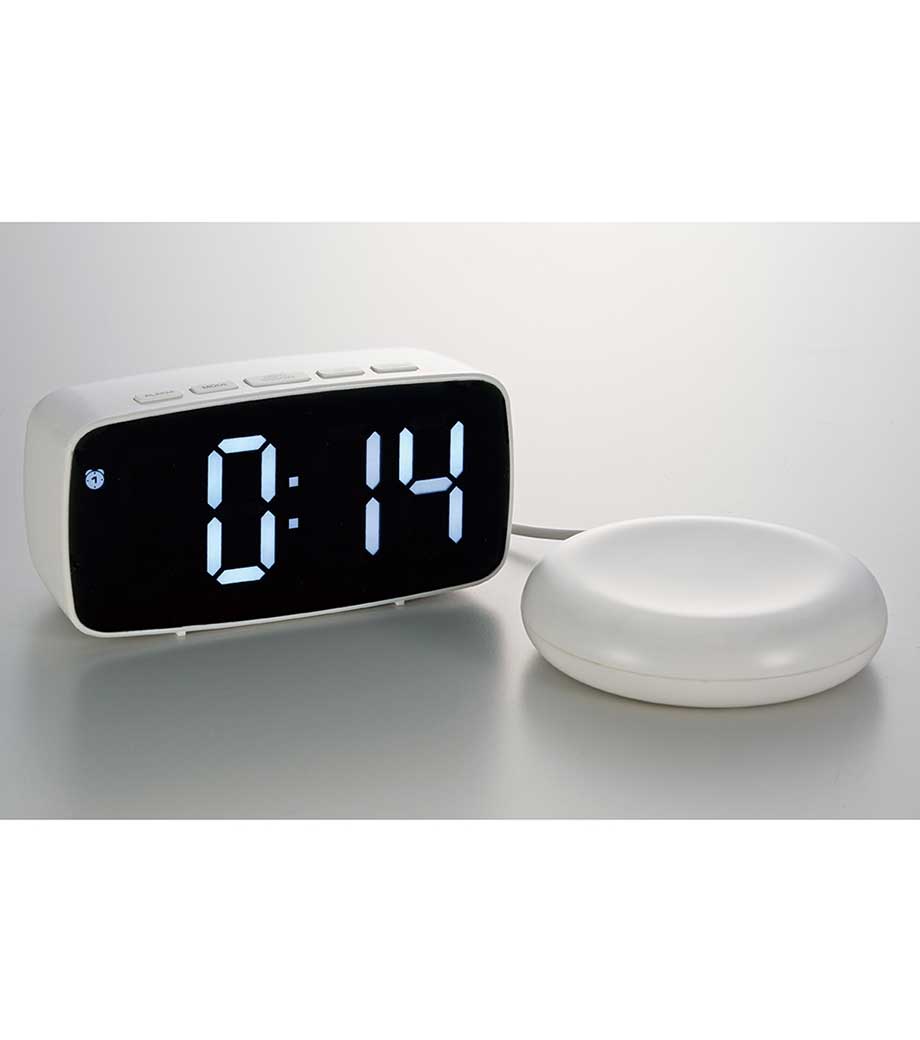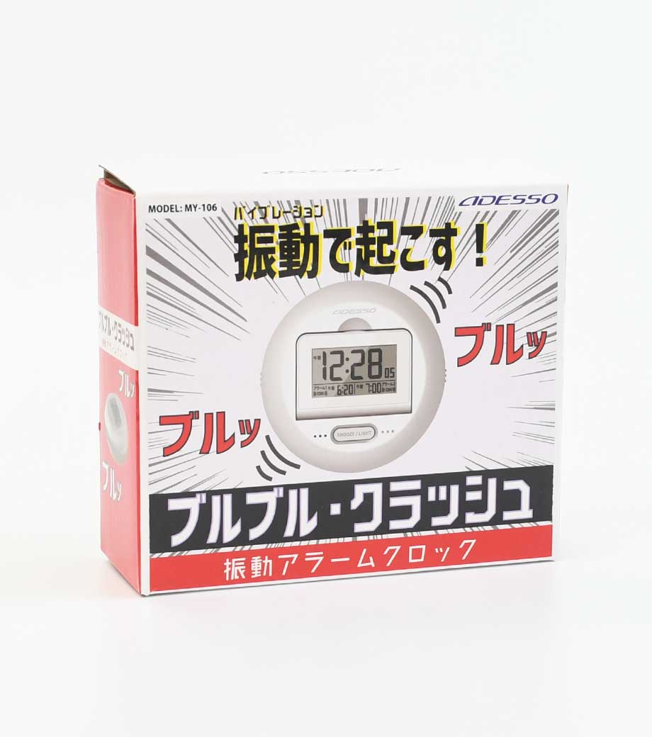 ブルブル・クラッシュ・振動アラームクロックはアラーム時刻に強力な振動で起こしてくれるデジタル時計。寝る前に枕下に忍ばせておけば、頭の下からダイレクトに振動が伝わるのでアラーム音だけでは物足りない方にオススメです。液晶部分は可動式で、置時計としてもお使いいただけます。ムダを省いたシンプルなフォルムで、インテリアにも馴染みやすいのが魅力。