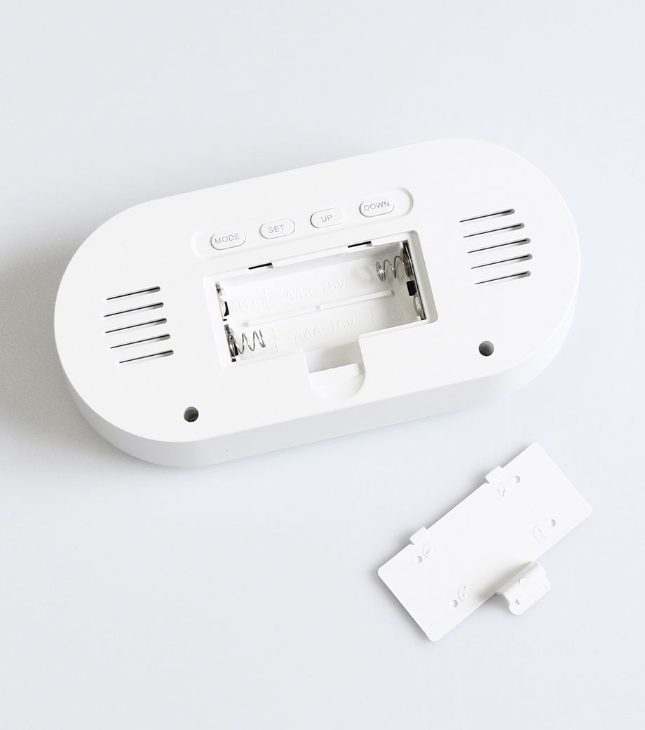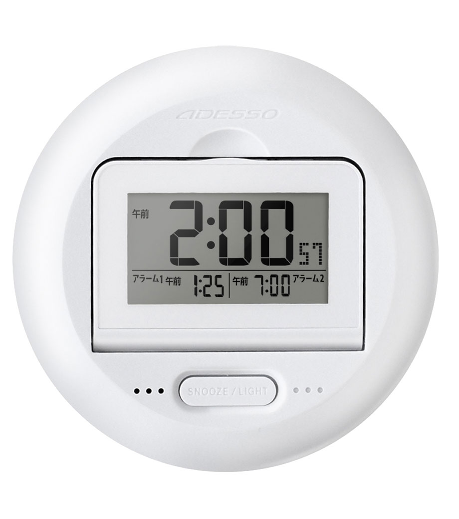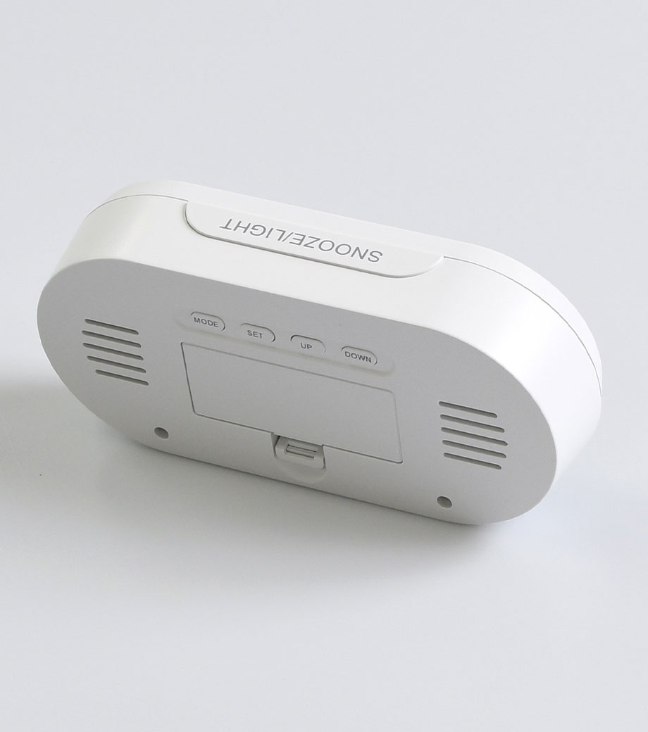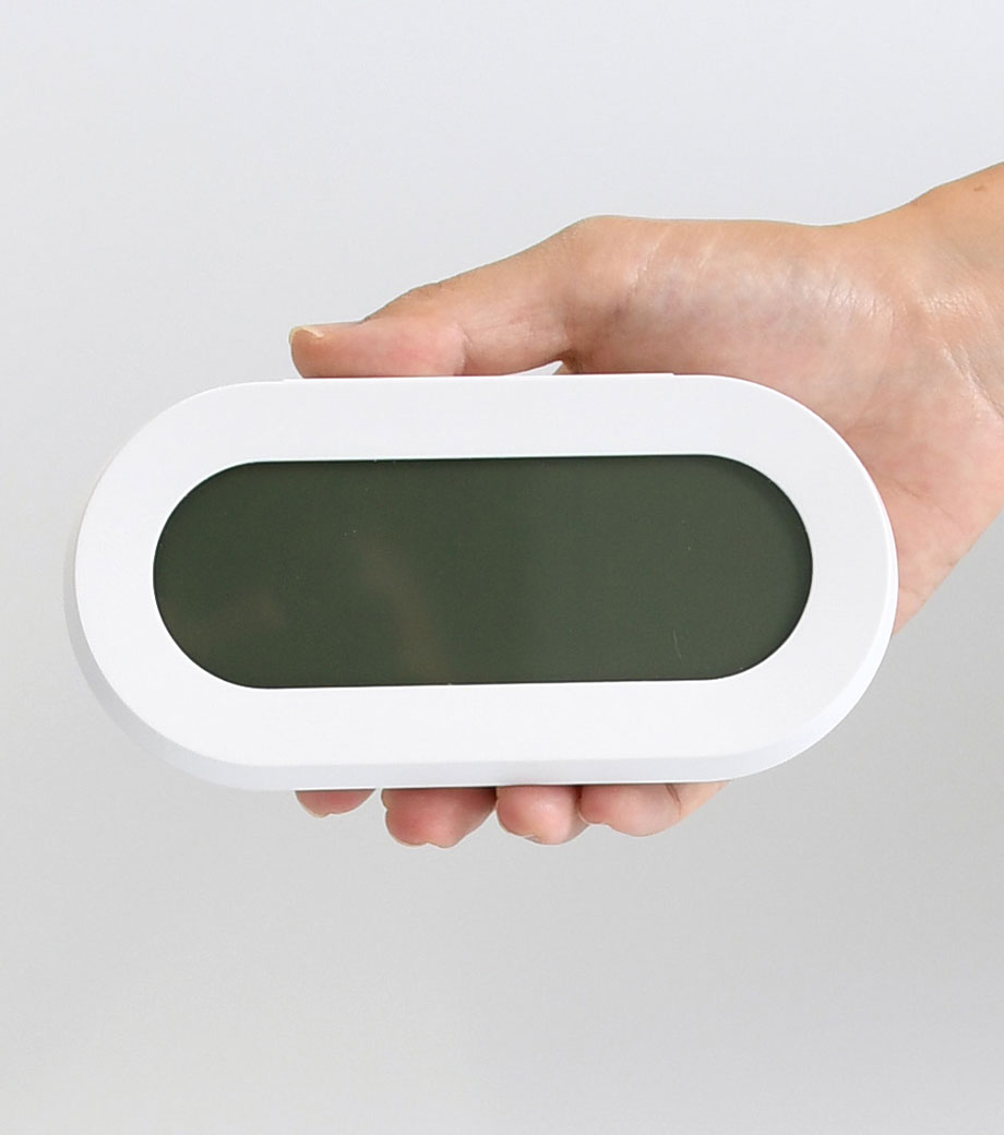 ホワイトラウンドクロックは、白くてころんとしたフォルムが魅力的。シンプルなデザインでどの部屋にも馴染む置時計です。時間をパッと確認しやすいデジタル表示。